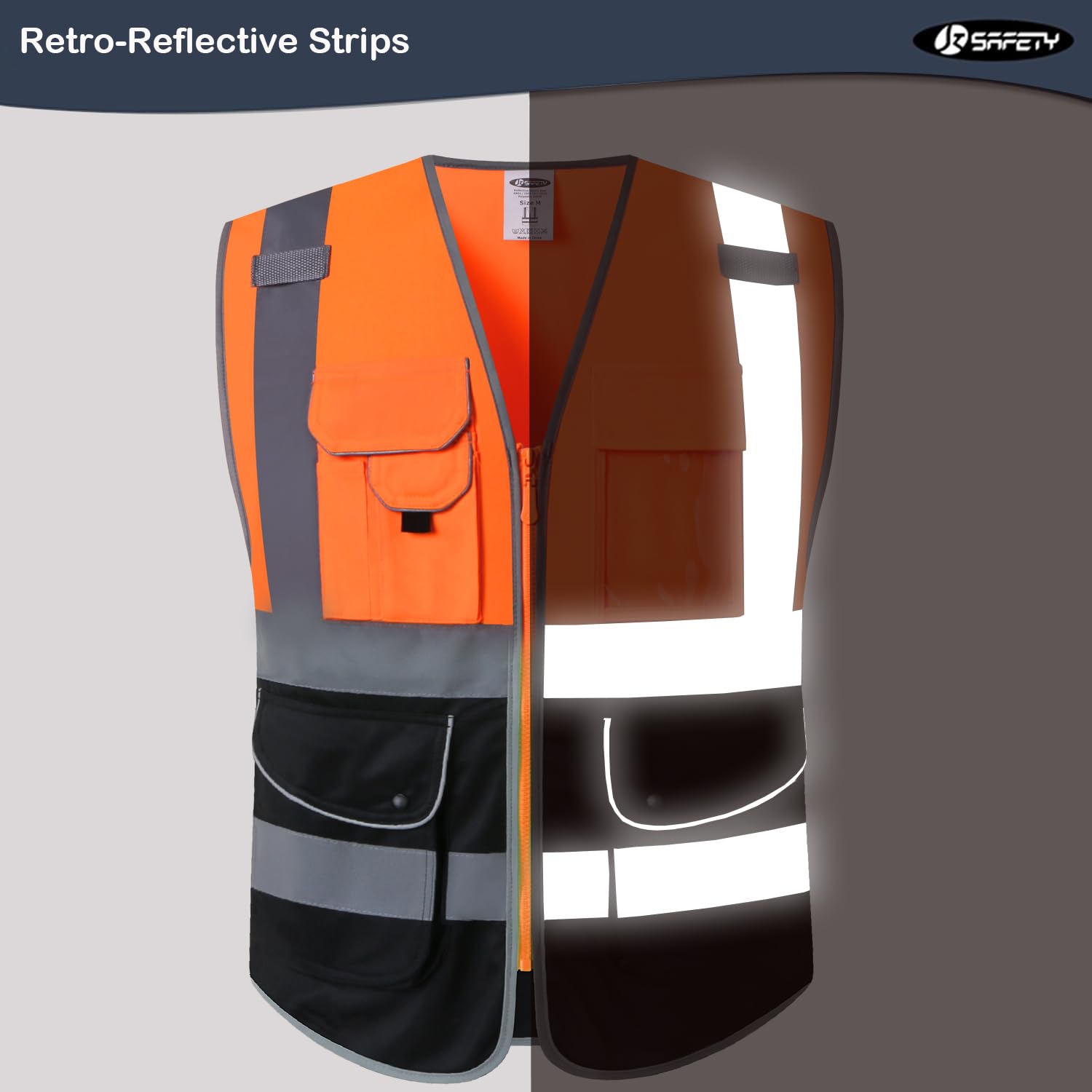 HIGH VISIBILITY AND 360° REFLECTIVITY: Orange safety vest is high visibility with two-inch wide reflective strips cover the waist, chest, shoulders and back which provide 360°protection while you are working under daylight or low light conditions.
