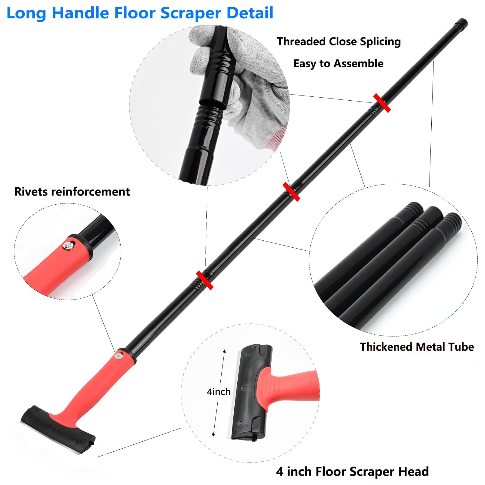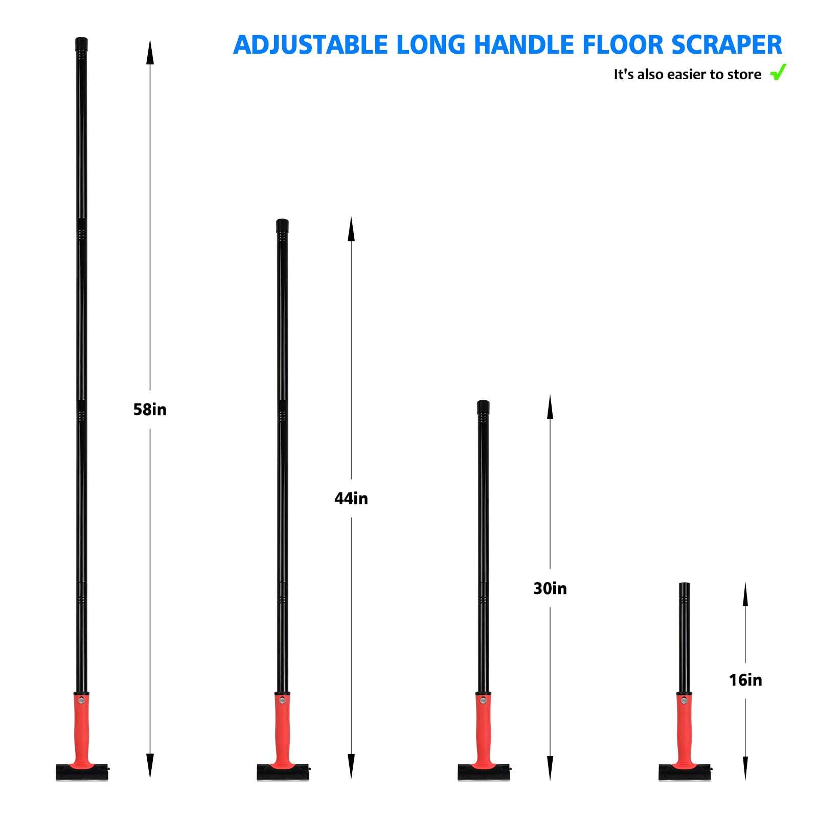 16''-58 '' LONG HANDLE FLOOR SCRAPER: Scraper with extension tube is about 16'', come with 3 pcs detachable extension tube,configure the scraper blade length as required for specific application scenarios