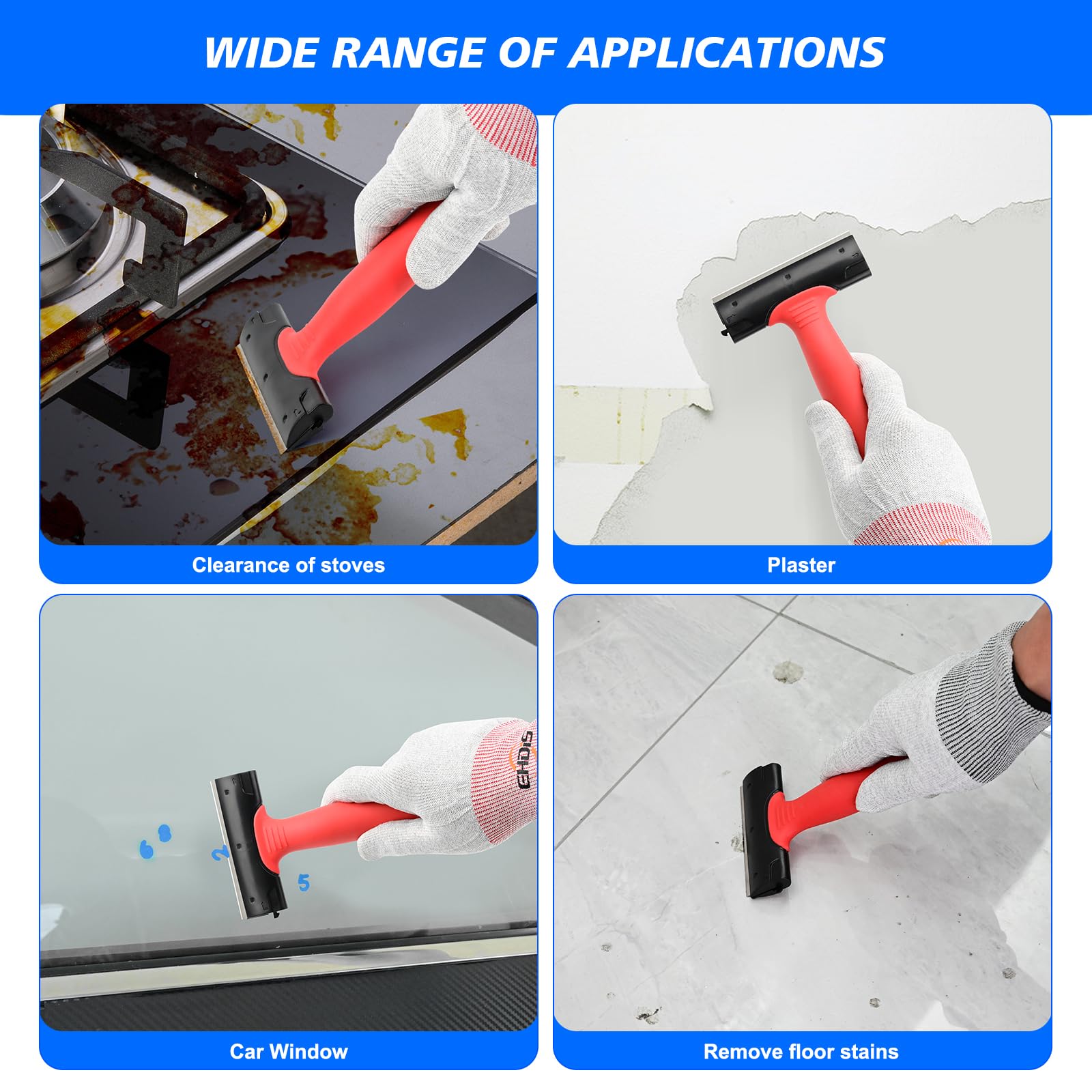 EFFECTIVE 4'' RAZOR BLADE SCRAPER TOOL: This 4-inch-wide flat razor scraper can clean a larger area than other mini scrapers. The ergonomic handle makes cleaning more labor-saving and efficient