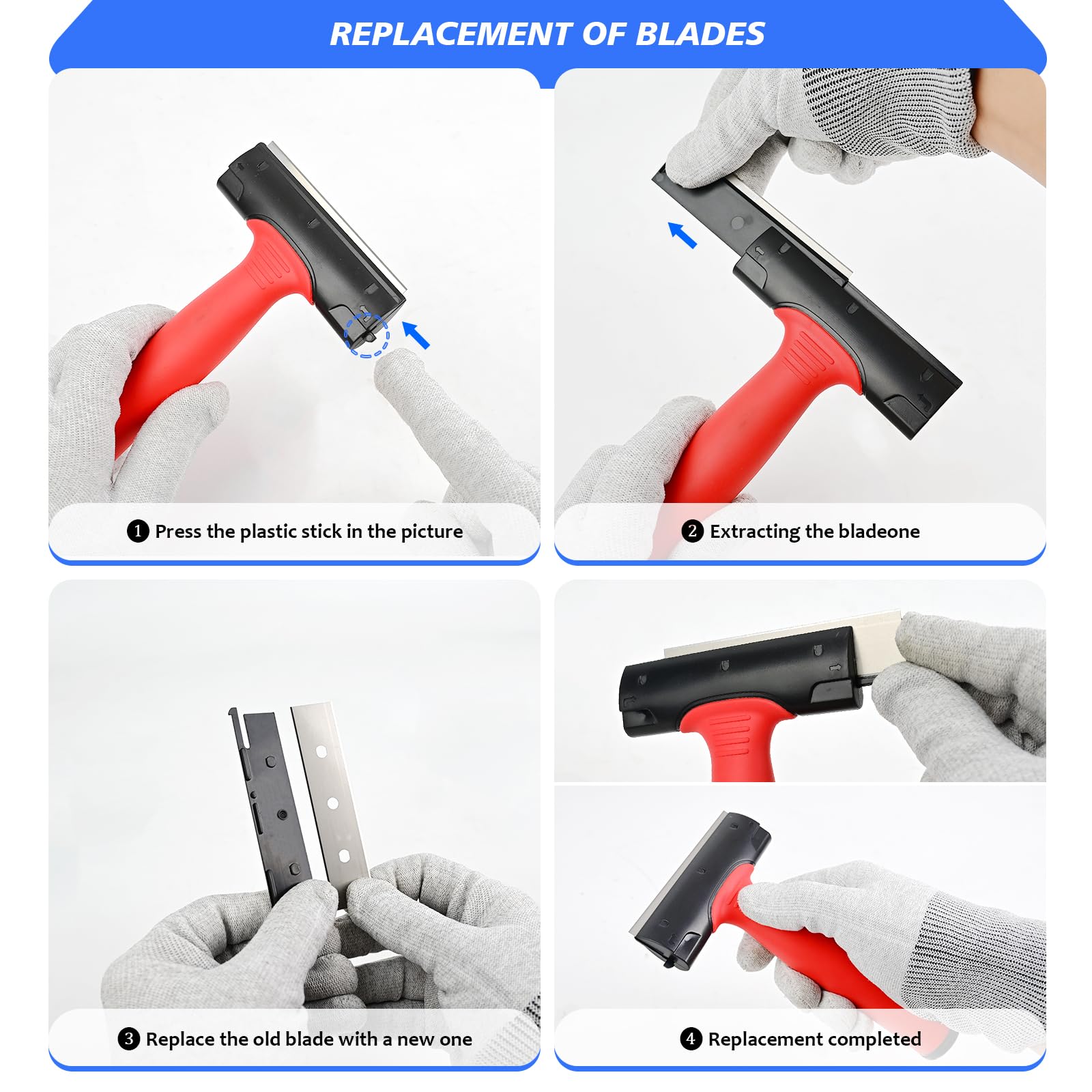 Labor-Saving Scraper Tool: The handle of this scraper tool has an excellent grip and makes them comfortable to use for less hand fatigue. The blade is extremely sharp. Scraper tool makes cleaning easy, simple and efficient.Changing blades is easy and convenient.