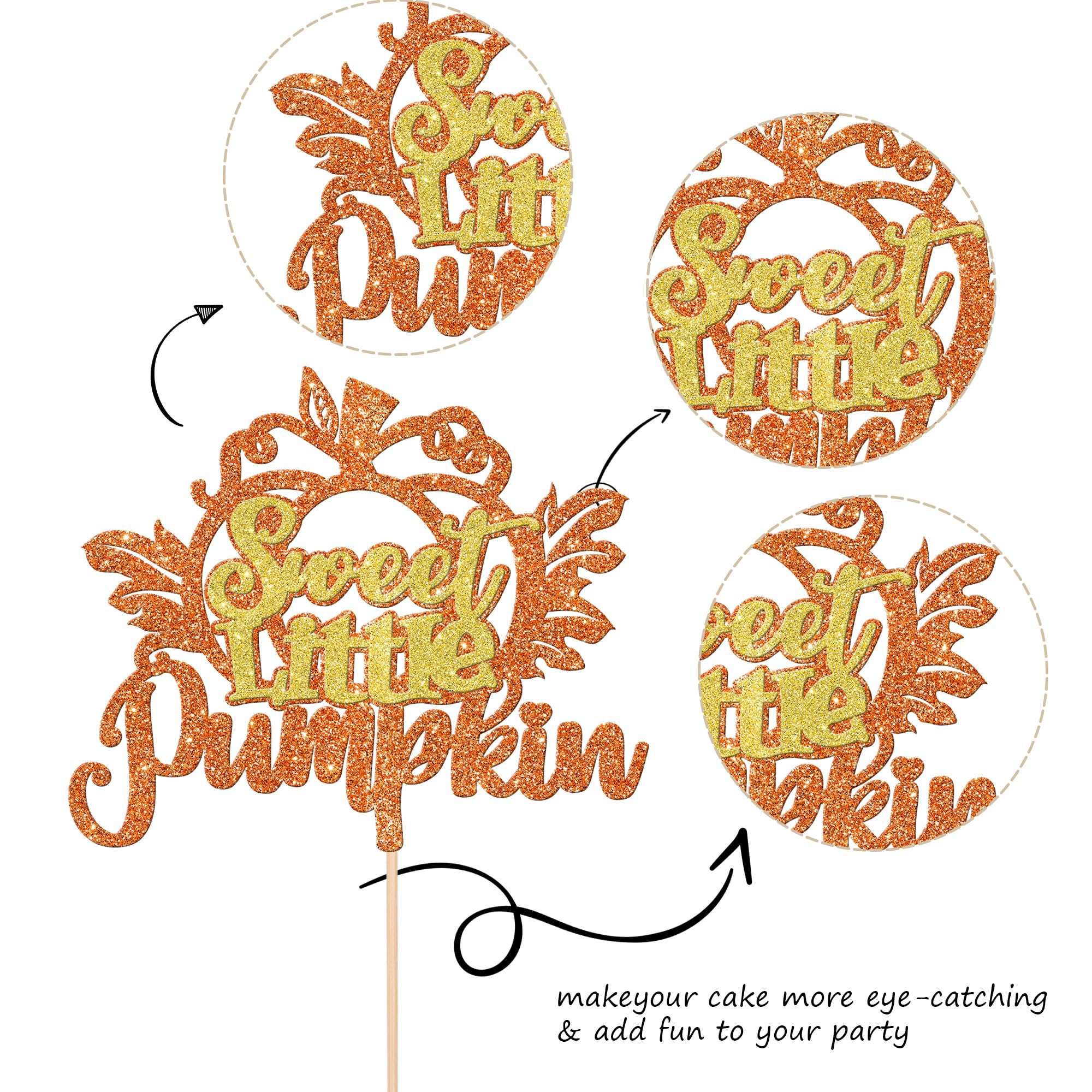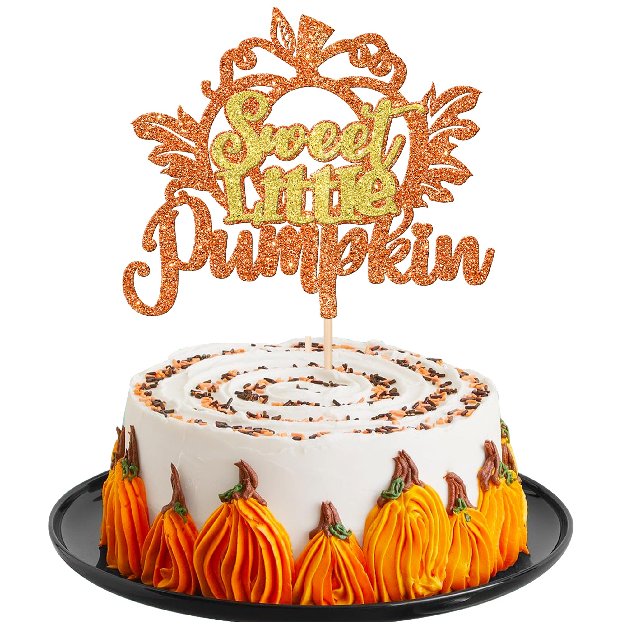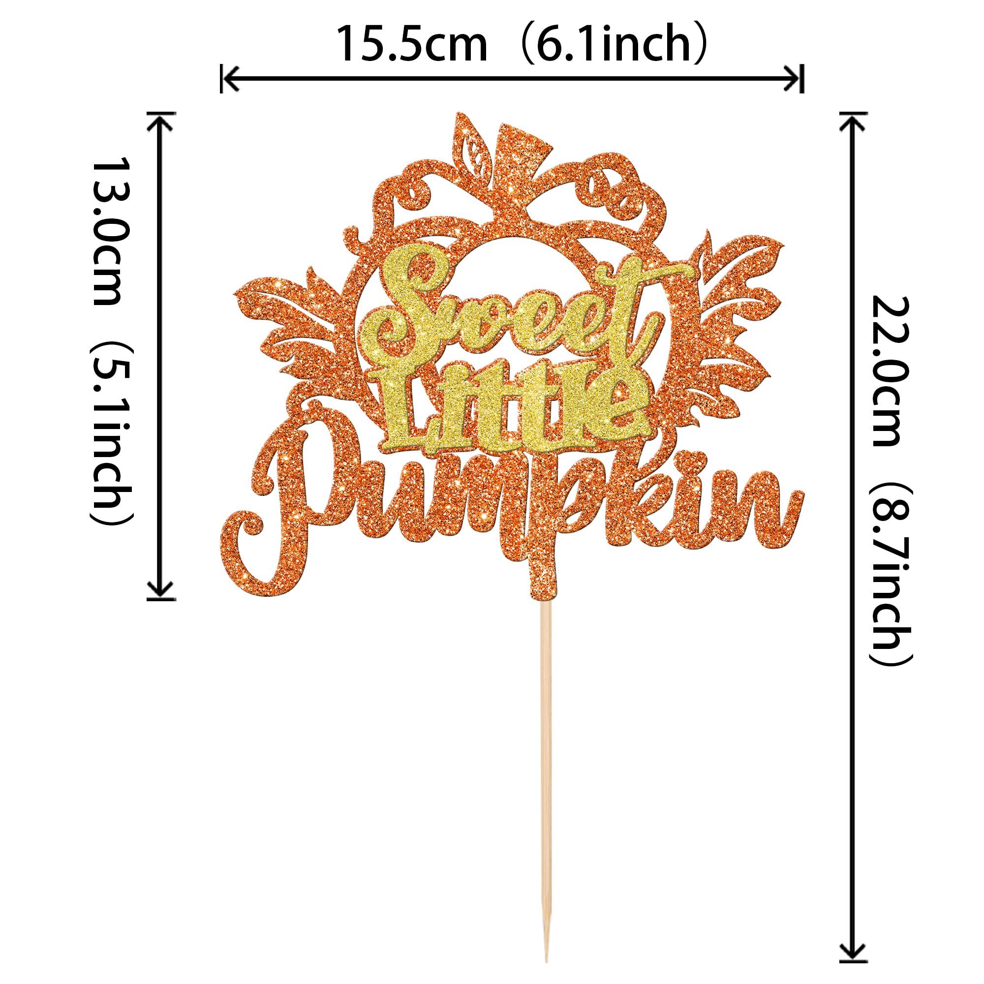 Sweet Little Pumpkin Cake Topper forThanksgiving Fall Harvest Theme Baby Shower Kids Birthday Party Cake Decorations Supplies Perfect for sweet little pumpkin theme party, fall theme party, baby shower theme party,thanksgiving theme party,kids boys girls birthday theme party cake decorations supplies . Pack of 1 pcs,1 pcs / card +opp bag The size is W 6.1 inch * H 8.7 inch / W 15.5 cm * H 22 cm ( with stick ) Made of high quality glitter paper card stock and food grade sticks,thick and sturdy. The cake topper is single glitter, the back is white, and they are intended for decoration only, please do not put them in oven or microwave. If the item you received has any defects, please contact us for refund.we will deal with it within 24 hours.