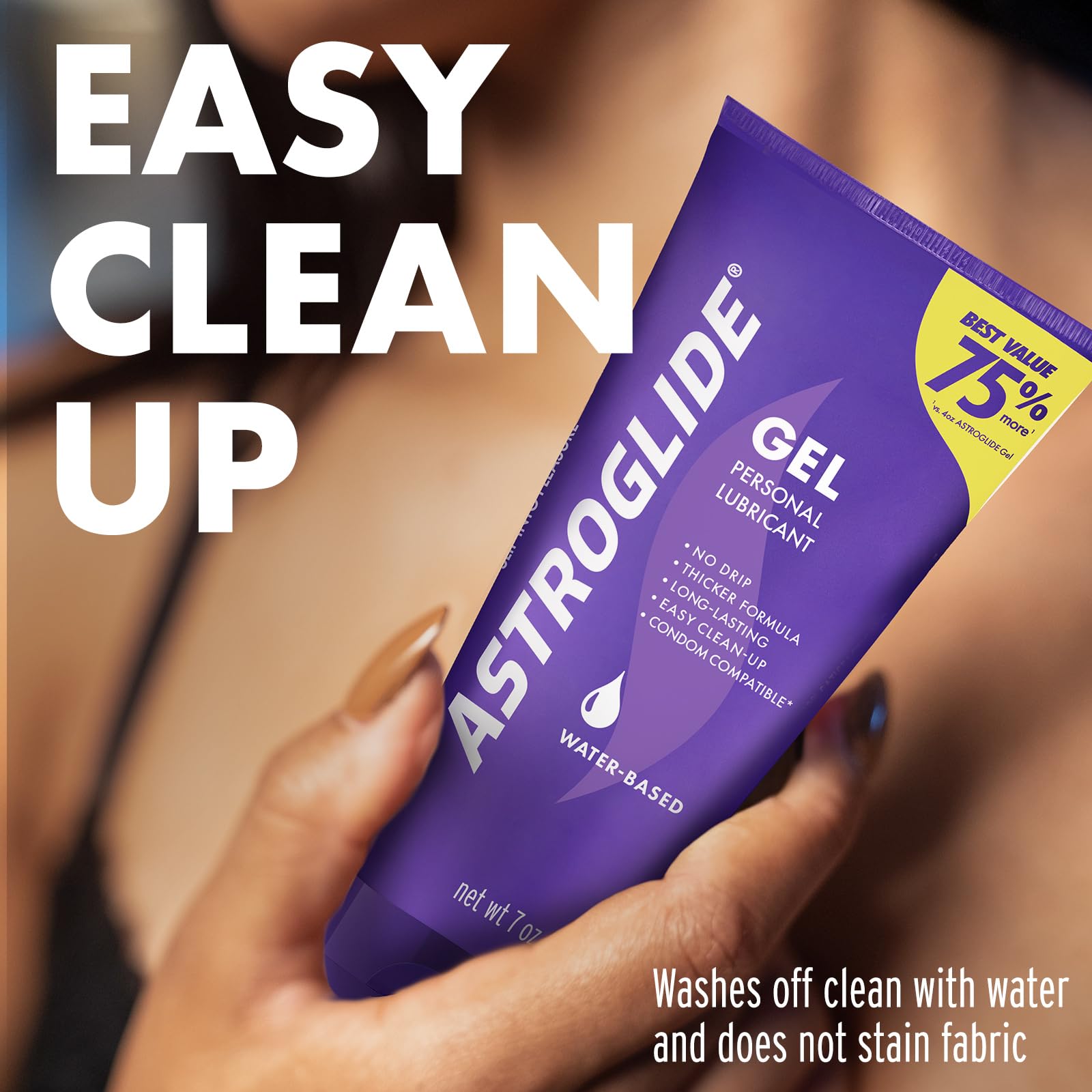 Our stay-put, super slick gel lube formula glides on like liquid velvet and easily rinses off of skin and sex toys with water. Delight in the pure sexual ecstasy of feeling every single sensation while you’re getting hot and heavy with this lubricating gel that provides more cushion for the pushing and minimizes irritation, discomfort, and dryness. Just like our original formula, ASTROGLIDE Gel works to relieve vaginal dryness and is safe for use with latex condoms. Discover how this lubricating gel relieves sexual discomfort, irritation, and vaginal dryness. ASTROGLIDE Gel is approved for use with not only latex condoms and sex toys, but also for lubrication for solo play. *Astroglide Brand Doctor Survey – Astroglide brand doctor office distribution since 1994, online national survey of n= 456 doctors, 2023.