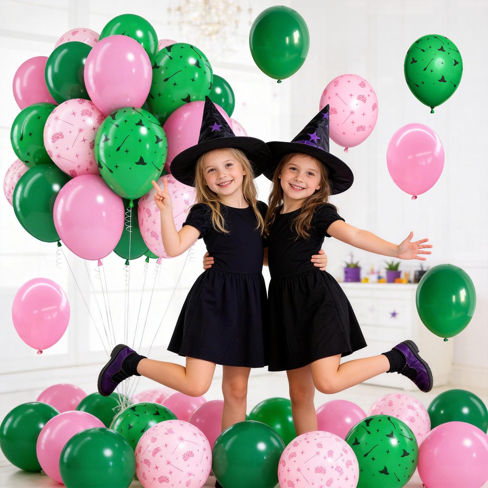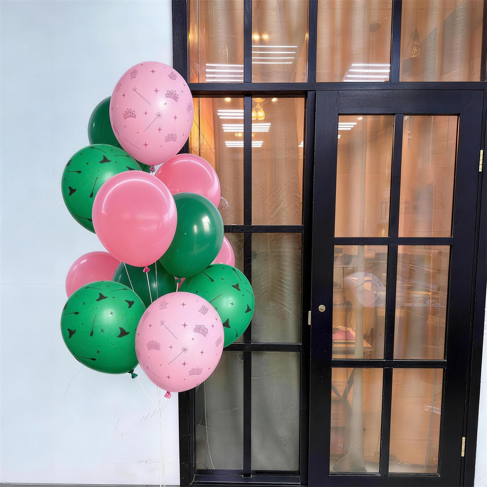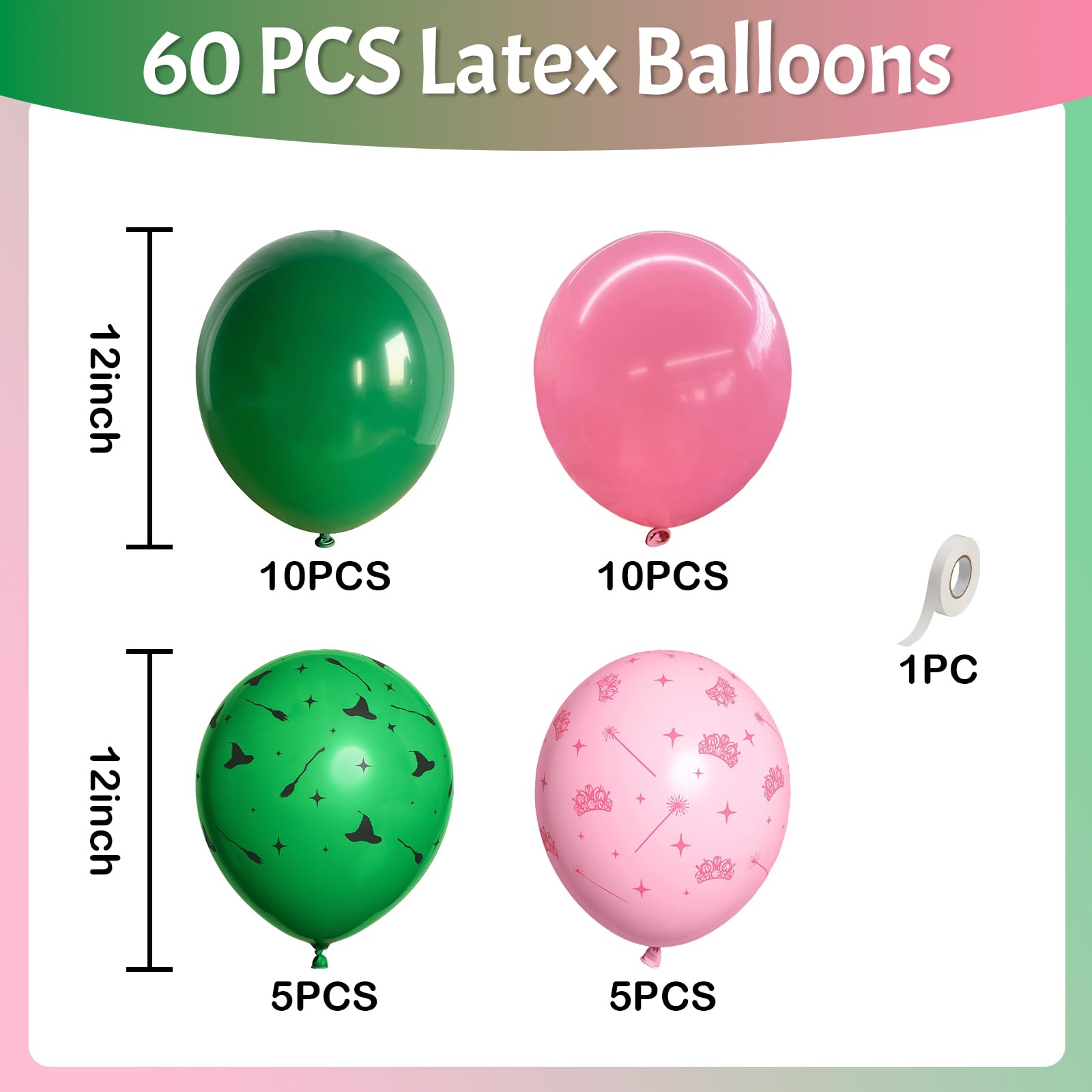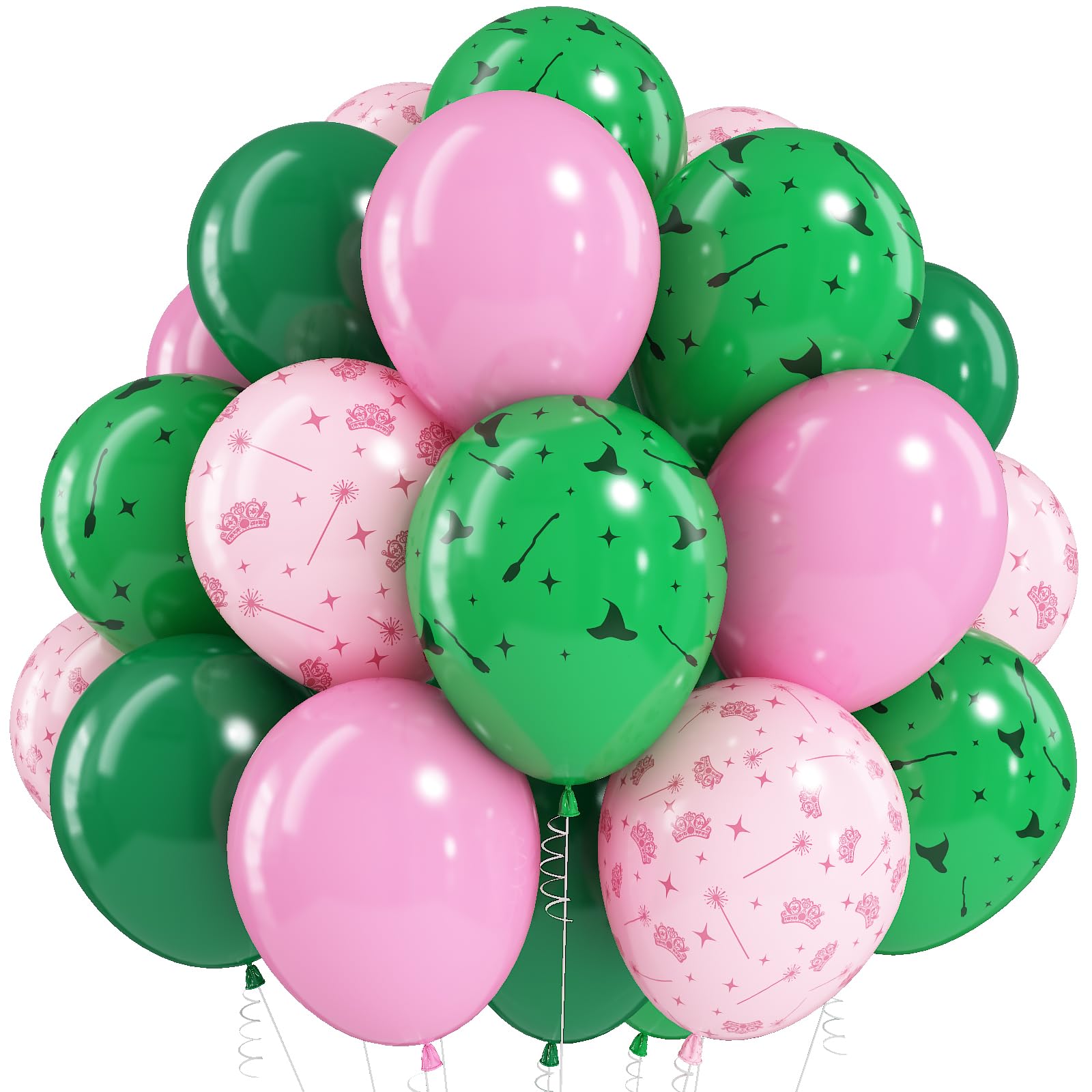 Green and Pink Balloons Kit: You will receive 30 pcs 12 in balloons set, including 10 pcs dark green balloons, 10 pcs pastel pink balloons, 5 pcs green witch printed balloons, 5 pcs pink crown printed balloons, and 1 roll balloon ribbon. This pink balloon set is ideal to DIY balloon arch, balloon garland, or a playful party balloons backdrop