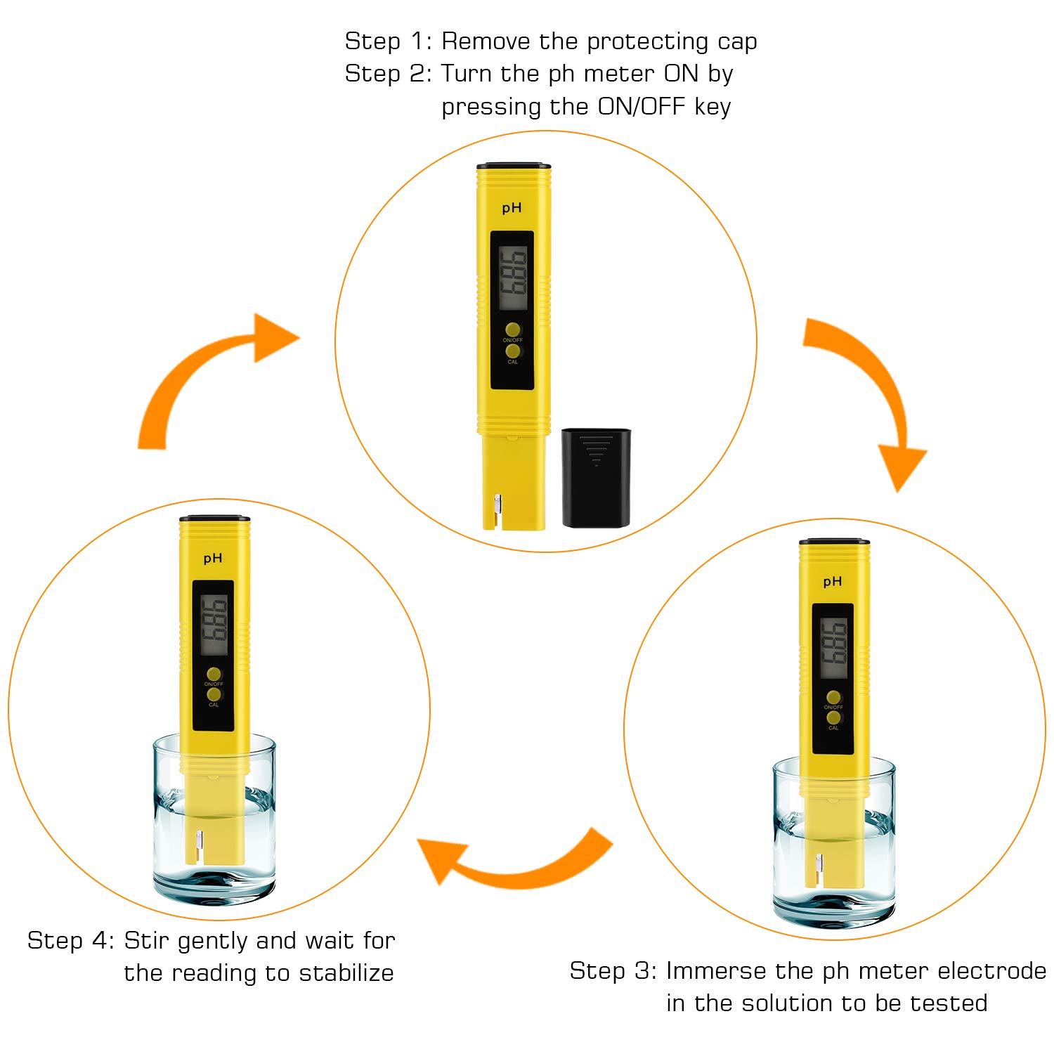 【Easy to use】turn on the switch,put the probe into the water and stir (make the small glass ball fully contact the liquid) and the value can be read when the value is stable.