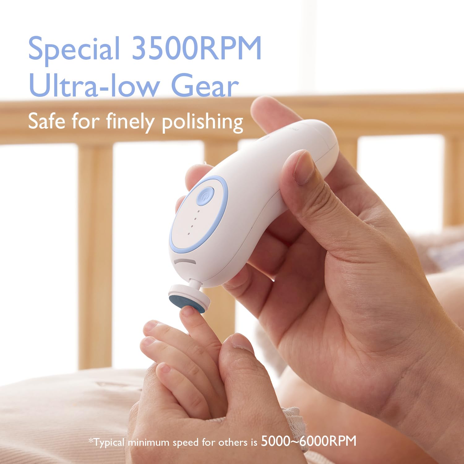 Safe for Baby - Our nail trimmer can choose 3500 lowest RPM for gentle grooming, touch-and-stop function, preventing the baby's finger injuries from accidental hand tremors of parents