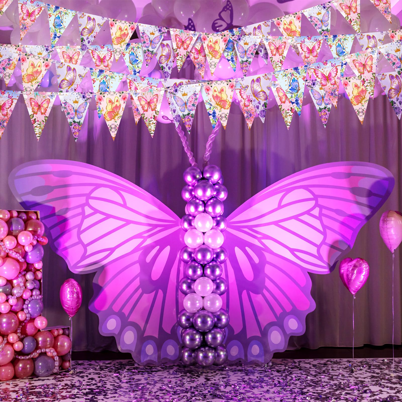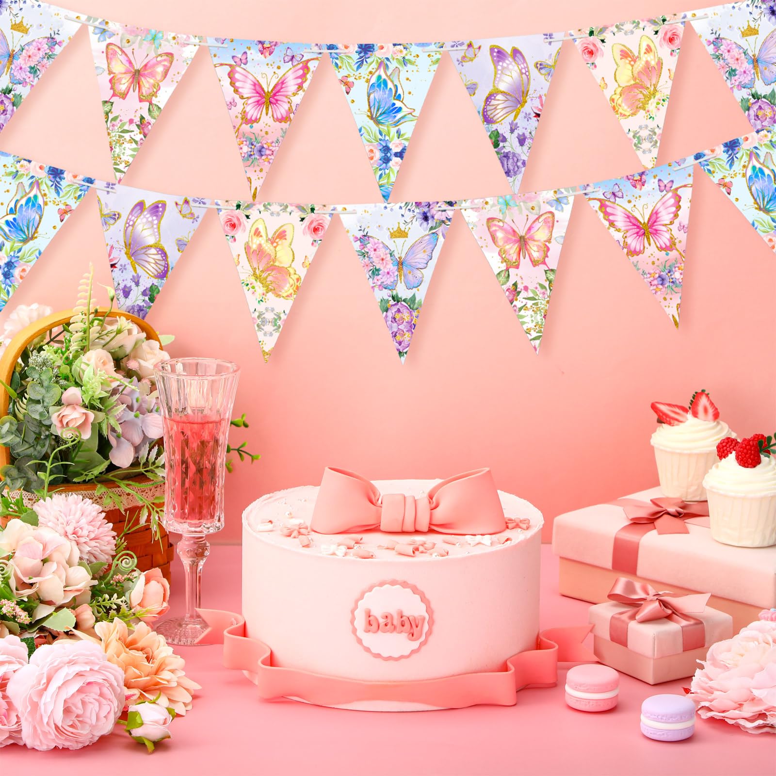 Impressive Butterfly Design: the banners have a butterfly flower design, which makes them impressive and suitable for party; The flower triangular flags not only resonate with the party environment, but also have a creative appeal that adds fun to the decoration and makes any event memorable