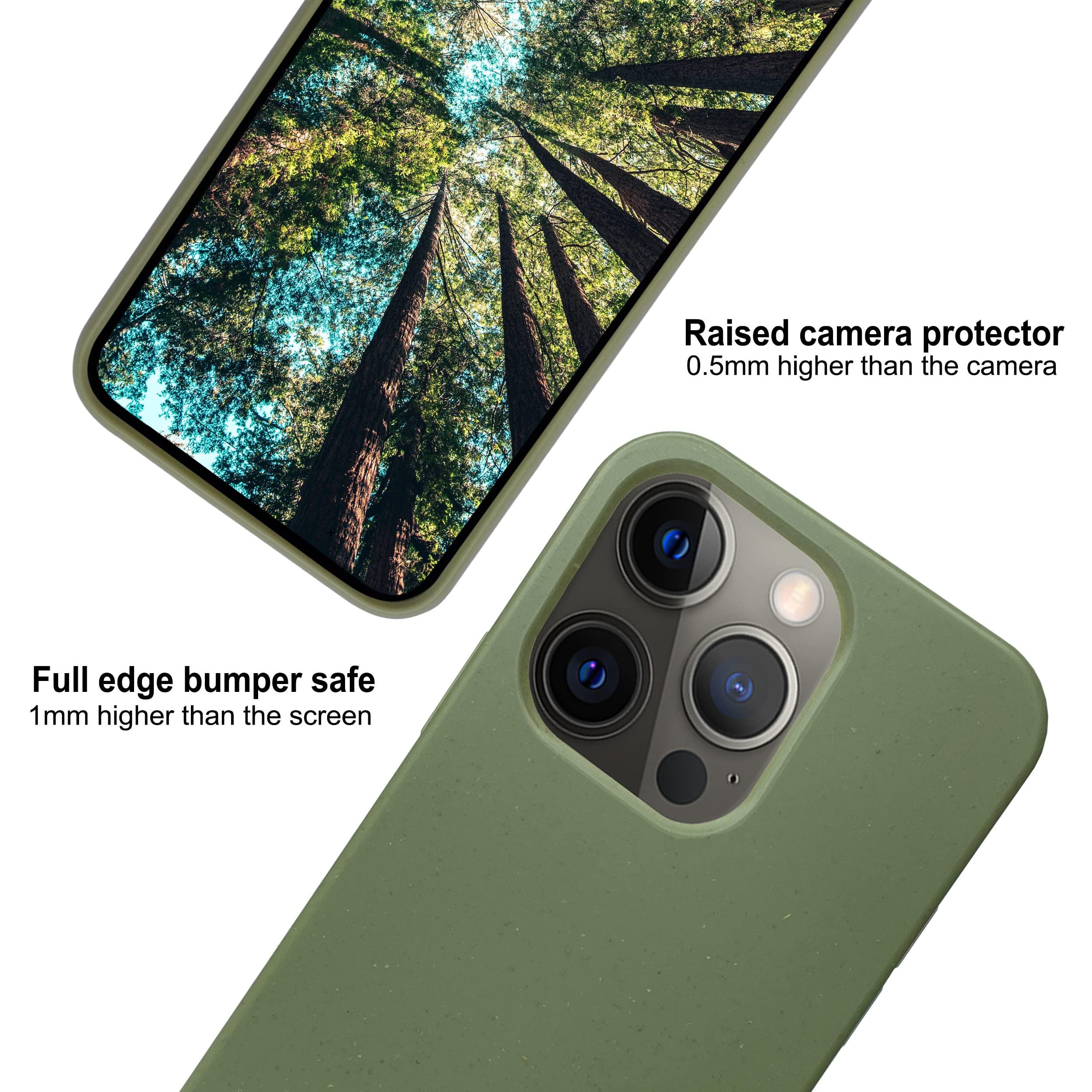 🌍 PROTECT YOUR PHONE AND THE PLANET: Mobile phone case by eplanita for iPhone 13 Pro is made from wheat straw and soft TPU. This combination makes the cell phone case kinder to the environment.