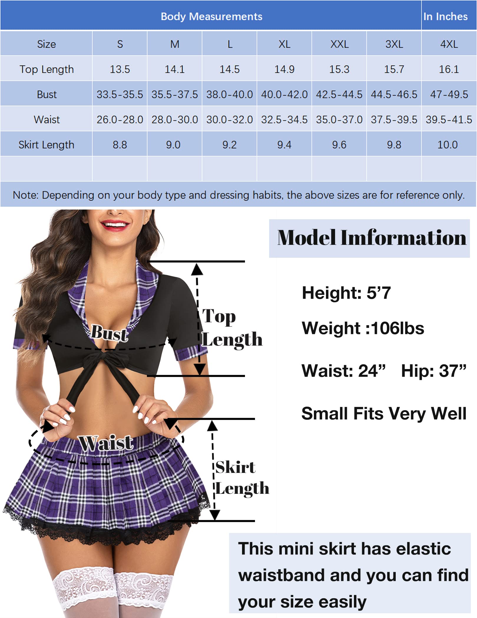 Package Content: 1 x lingerie set with crop top and pleated skirt.Please refer to our Size Chart for selection.