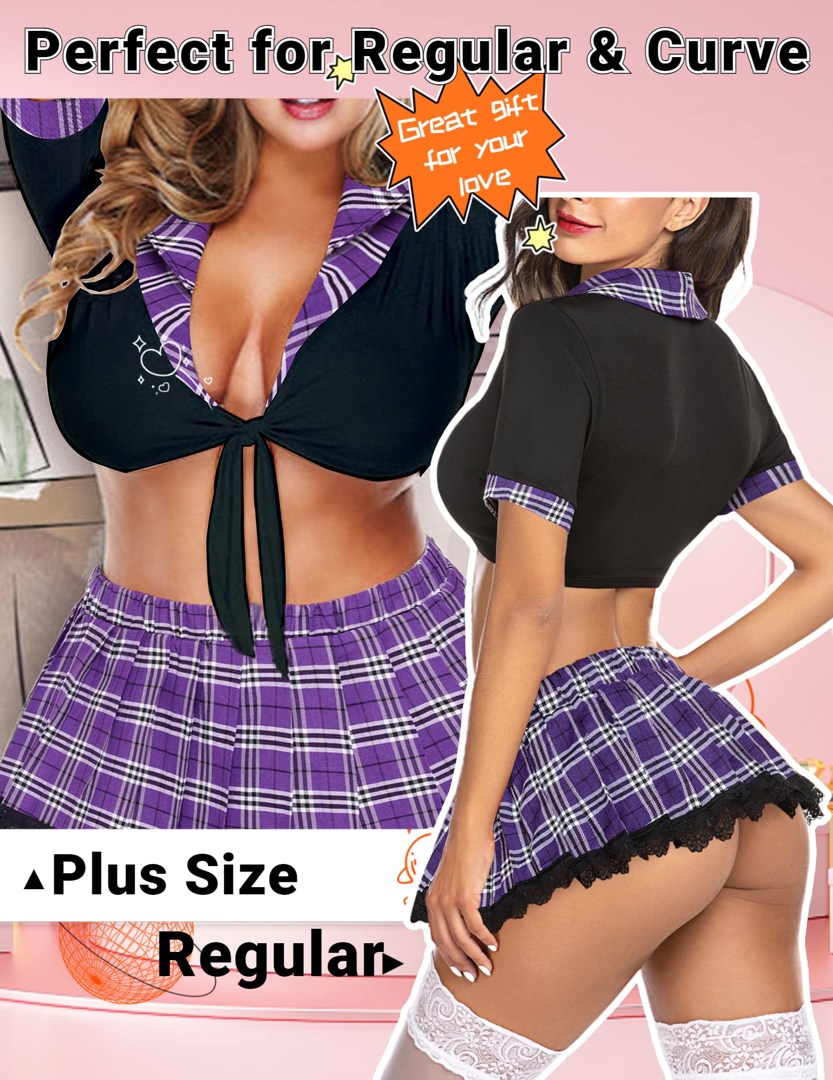 The crop top of this school girl outfit features tie-front closure and it is easily adjustable to any sized chest. Also it has strong support that will make you confident and look charming.