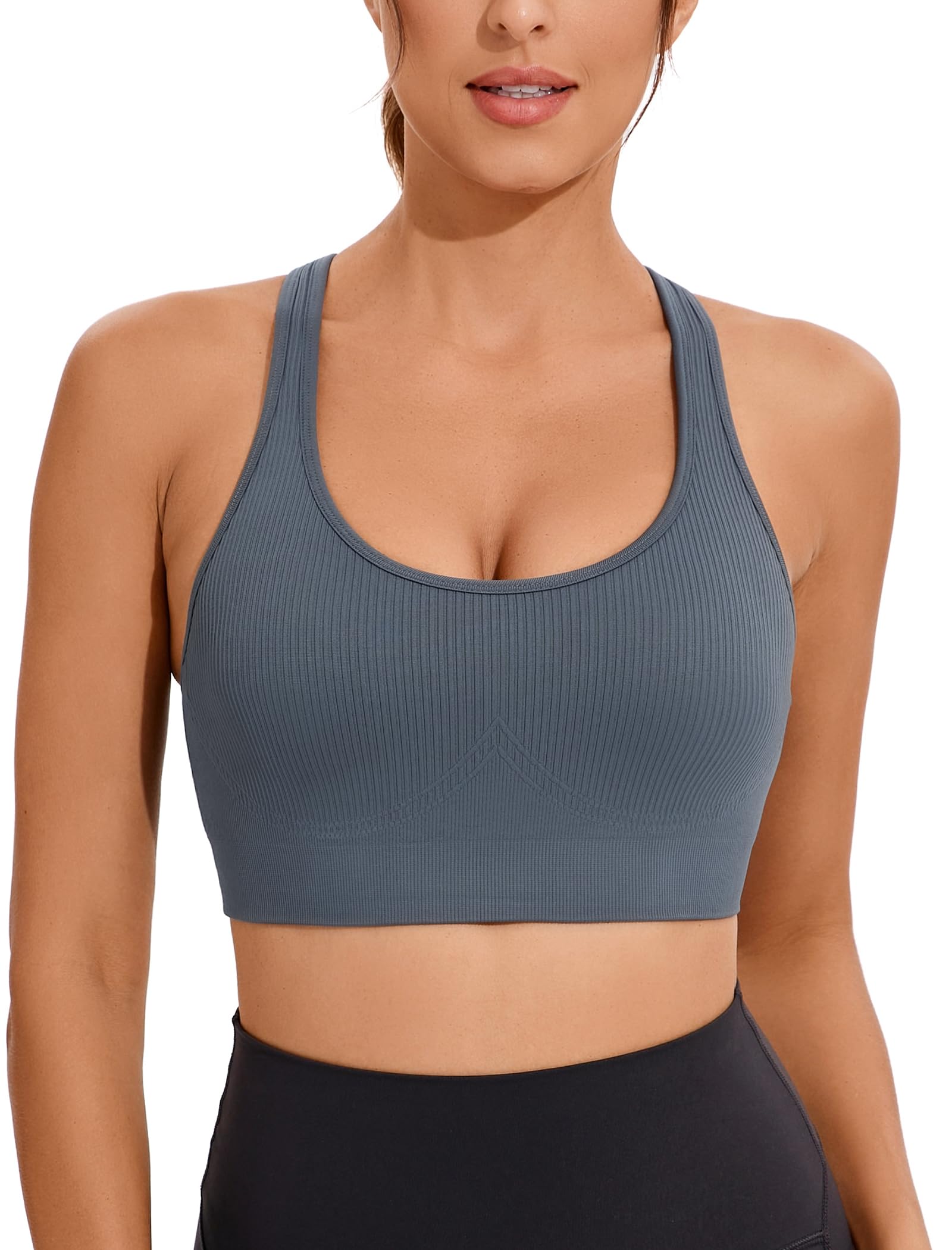 WHY WE MADE THIS:Need a sports bra that does it all? Look no further.This sweat-wicking cross-strappy sports bra gives you the coverage and support you need for yoga, run,and the gym—without restricting your movement or breath fabric has added lycra that allows the sports bras for women to stretch with you and retain its shape over time.Slip in optional for full coverage—if you want it.This high impact sports bras for women is intended to provide great shape retention,long-lasting comfort.