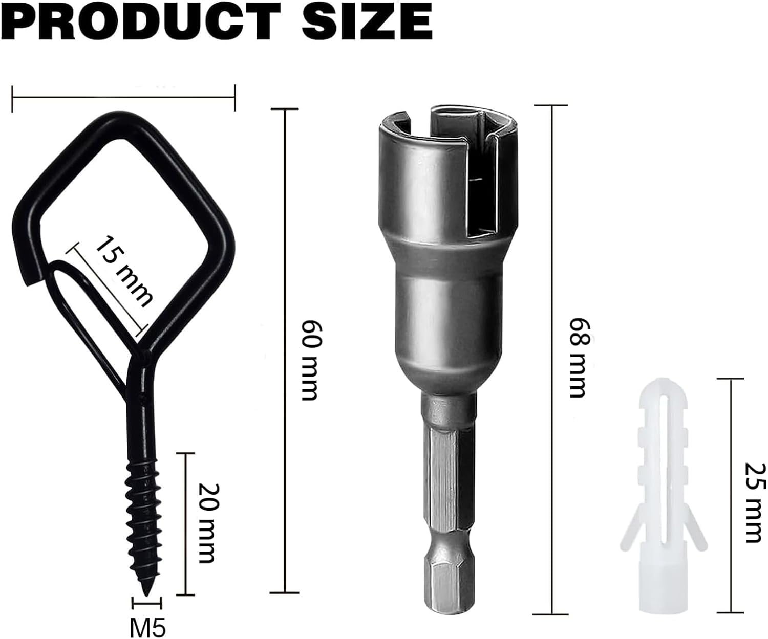 【Package list 】The set includes 20 screw hooks, 20 expansion tubes and 1 wing nut driver.