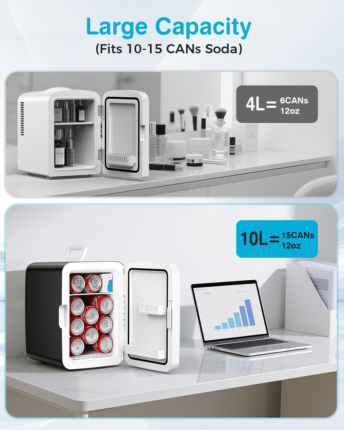 【Eco-friendly & Gift ideas】: The fridge’s semiconductor refrigeration chip is freon-free and ETL certified, so you can rest easy even with the fridge right next to you. It is great for bedrooms, offices, dorms, travel, car, camping and gift for friends