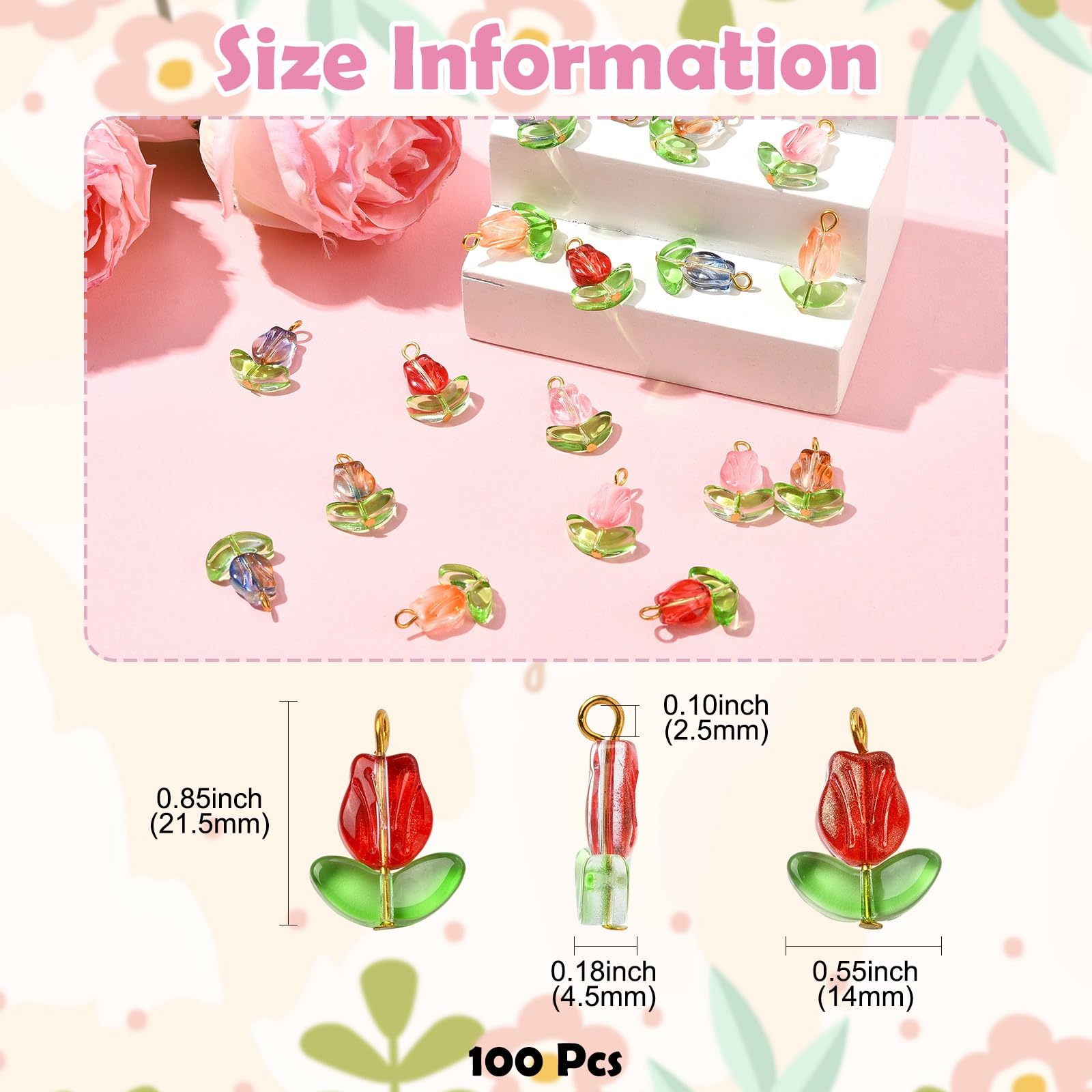 π·Package: There are a total of 100 Pcs tulip flowers charms, with multiple colors available for DIY creation.