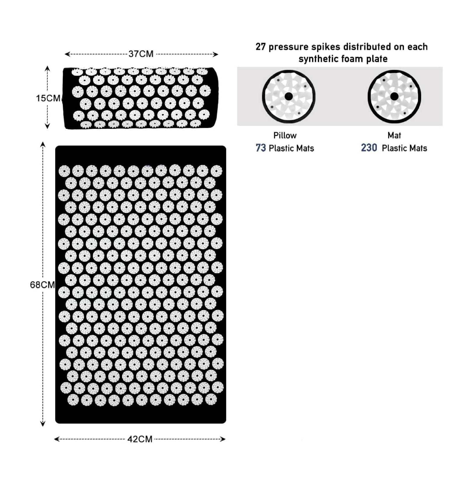 【Complete Acupressure Set】: Includes both a 67x42cm acupressure mat and a 37x15x10cm pillow; offering a full-body relaxation experience; promoting improved circulation and overall well-being with regular use