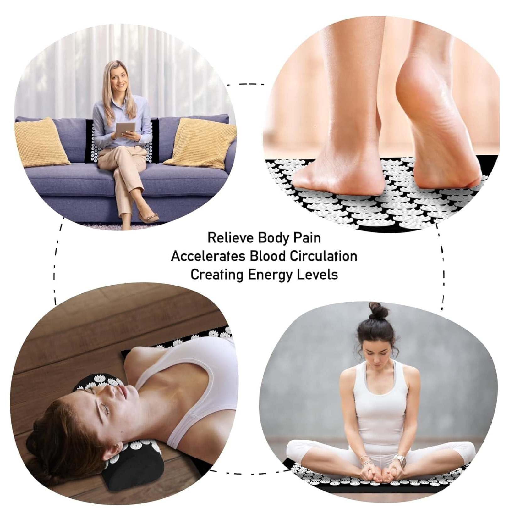 【Effective Pain Relief】: This acupressure mat set targets key pressure points to help alleviate back, neck, and shoulder pain; reducing muscle tension and promoting relaxation for a more comfortable daily experience