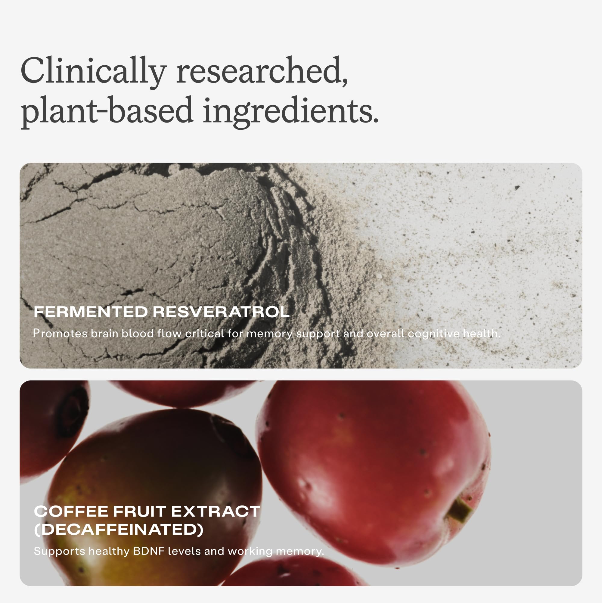 SUPPORT MENTAL FOCUS: Ingredients backed by clinical research. The decaffeinated Coffee Fruit Extract in each Memory and Focus supplement is clinically studied to support BDNF levels, a key neuroprotein associated with learning and memory.
