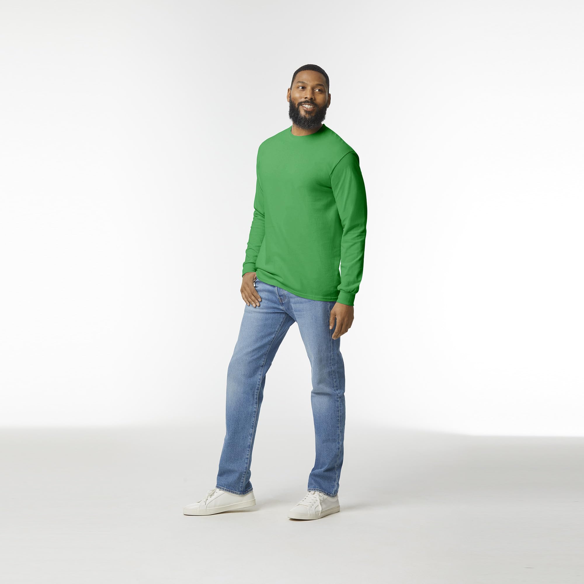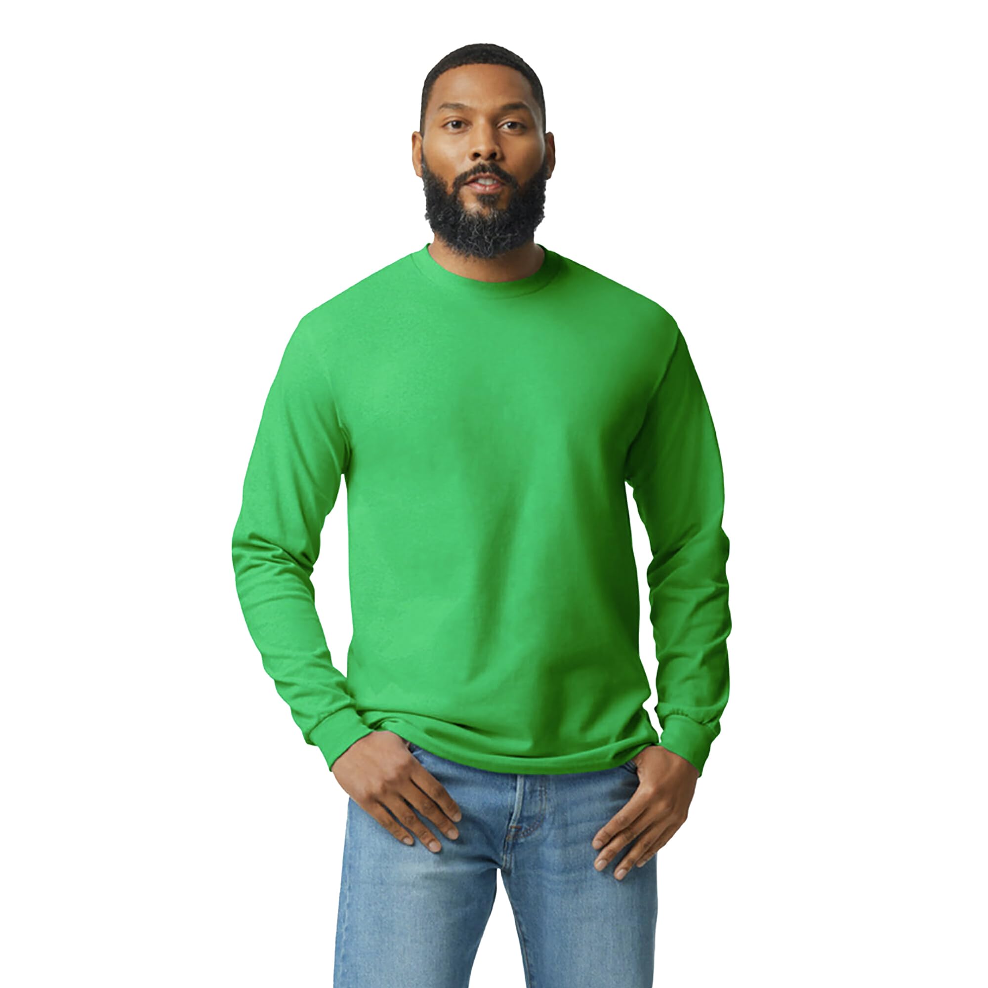 Description Gildan’s G5400 Adult Heavy Cotton Long Sleeve T-Shirt gives you great your round coverage. Made of 100% U.S cotton, it features a classic fit and rib knit cuffs. It can be worn for any casual occasion or dress it up with a vest or blazer. This soft, comfortable fabric can be decorated with just about any ink or paint, embroidery, iron-on transfers, bleaching and tie dye.