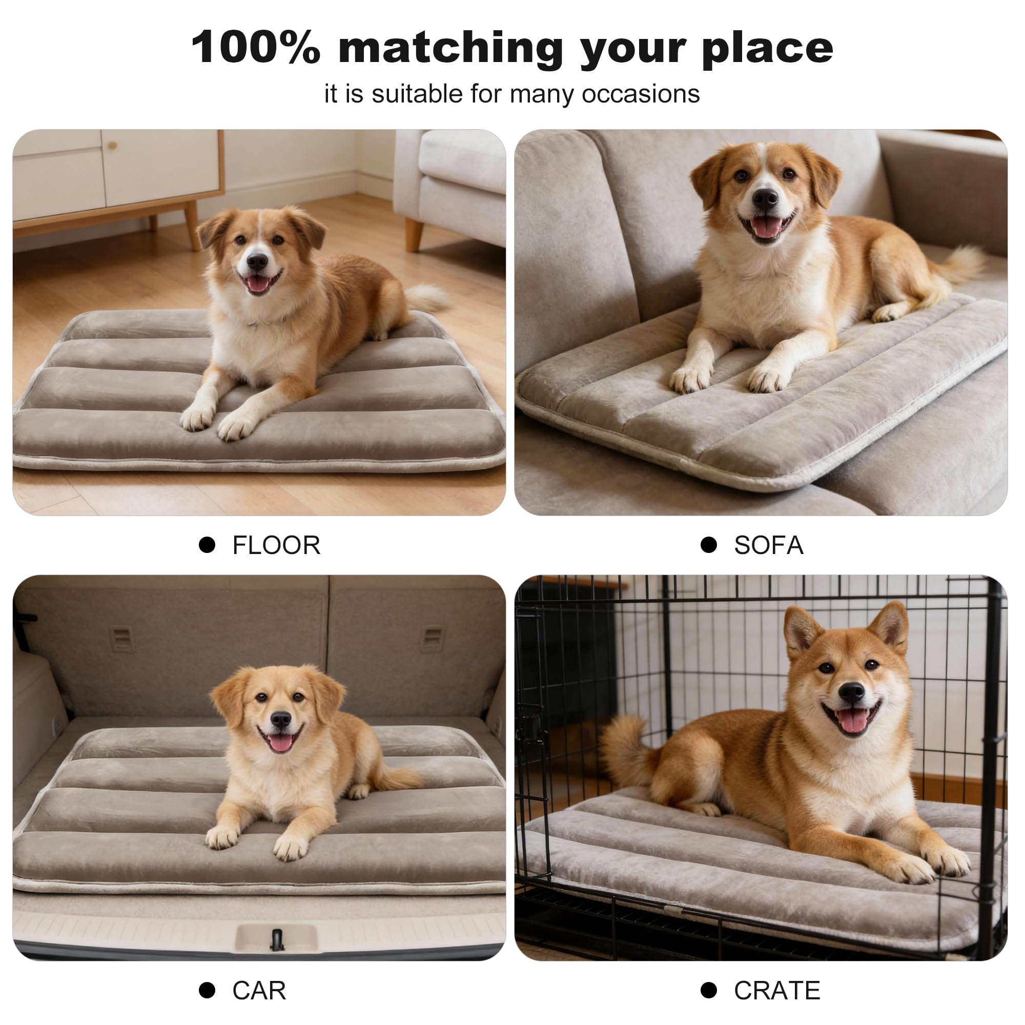 【Supportive & Portable】Designed as a low-profile rectangular dog bed, it offers the perfect balance of softness and joint support. This flat dog bed fits neatly into most crates and corners. Lightweight and easy to move, it brings comfort wherever your furry friend settles down.