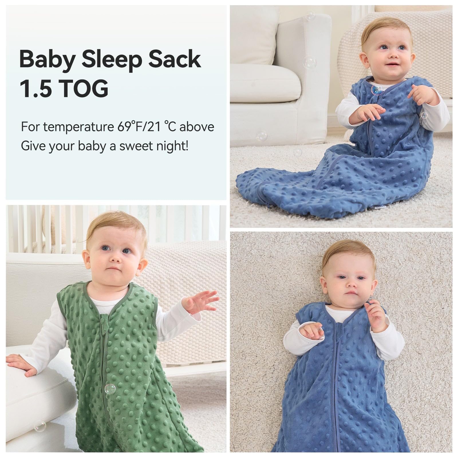 Soothing Dots Design - The fleece sleep sack with raised dots resemble mom's touch, giving your baby a familiar sense of security and soothing baby to sleep through the night. Suitable for temperatures between 69-73°F (21-23°C), this 1.5 tog sleep sack creates a warm and cozy environment for your baby.