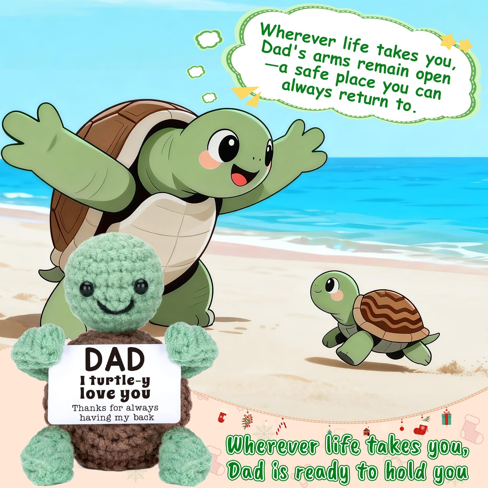 Dad Christmas Gifts: Each knitted turtle about 2.3 x 1.4 x 3.5 inches, matching with card, compact and fit perfectly in pockets or backpacks, easy to carry; Mini turtle acts as forever accompany will cheer you up and give you emotional active support