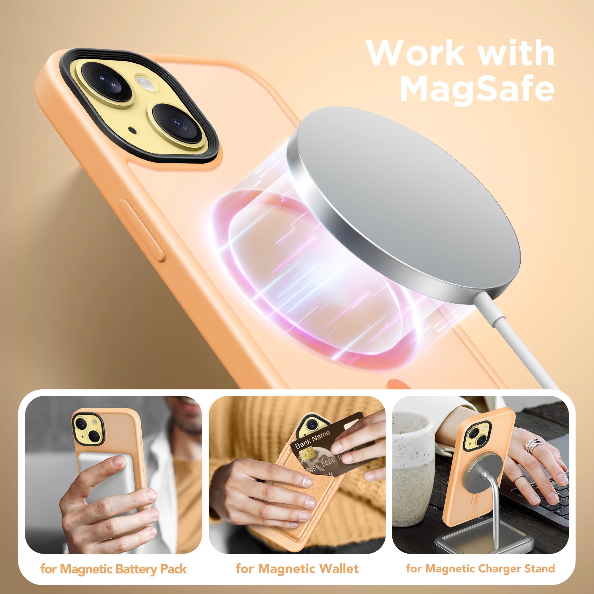【Compatible with MagSafe】This iPhone 14 phone case has a built-in magnetic ring. 48 strong N52 magnets are evenly distributed, magnetic strength is 4X stronger than other case. It can be perfectly and safely aligned with Mag Safe and other QI-certified chargers to achieve safe and fast wireless charging. It can be firmly and securely connected to all Mag Safe accessories, such as magnetic wallet, charger, battery pack, car mount, and will not fall off no matter how rotated or shaken.