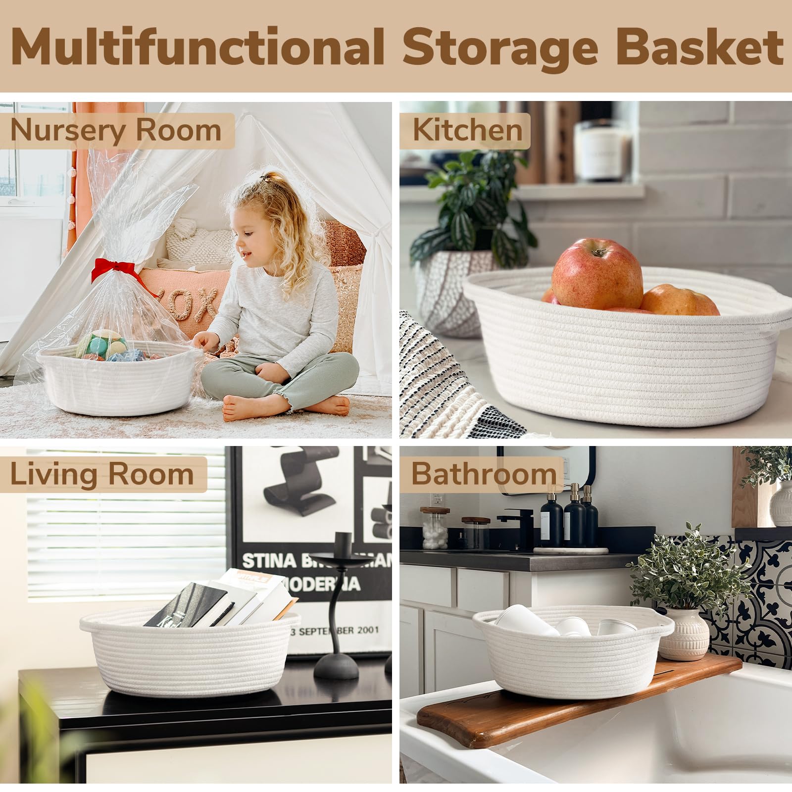 Superior materials: Our storage baskets are made of woven cotton thread, which is very soft and won't harm furniture or scratch items. The basket size is 12"x 8" x 5", seamless design is not easy to tear. This storage basket has a collapsible design with built-in separate handles for easy carrying and storage. The basket is shaped like a small boat and is a decorative addition to your cabinet
