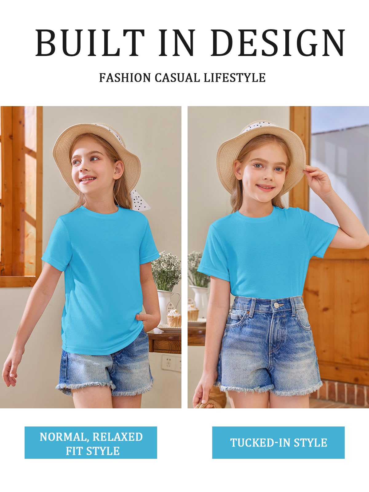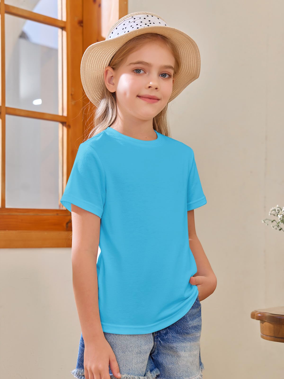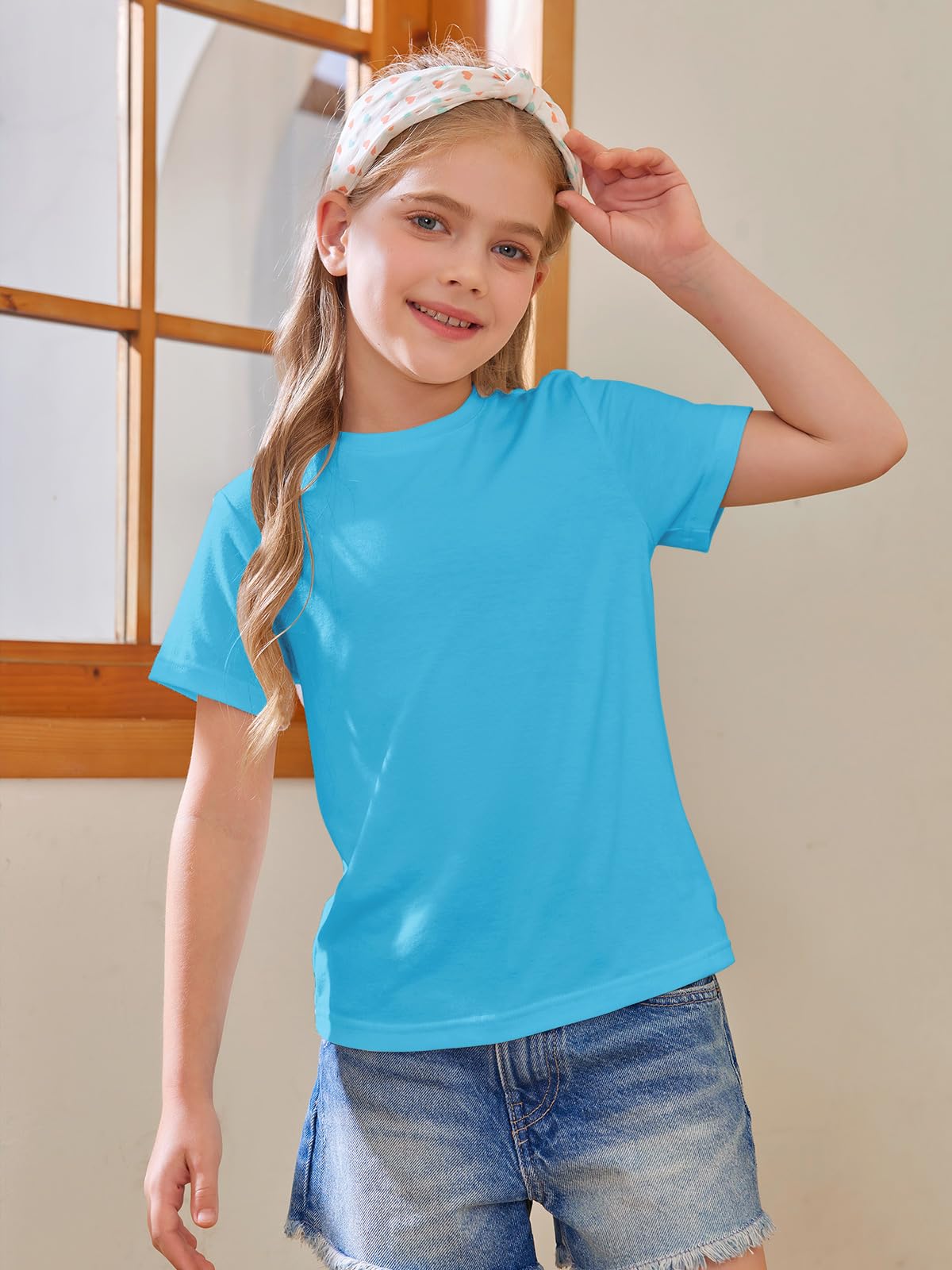 Design: Girls summer t-shirt, casual solid color tee tops, classic round neck and regular length, ,it's a good choice for slim kids.The loose fit provides a comfortable fit for ease of wear and movement. Don't worry about showing your belly when you play