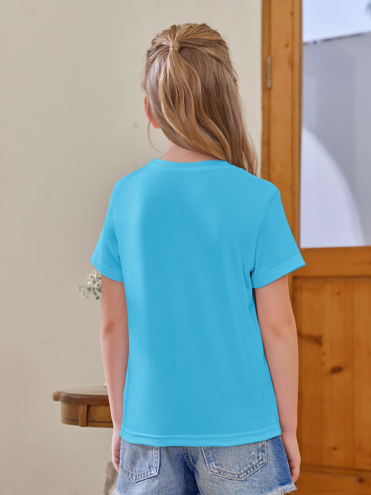 Match: These girls short sleeve T-shirts can be easily paired with shorts, skirts, jeans, overalls, sweatpants, flats and sneakers. Or pair it with a cardigan or jacket in spring and fall. A classic and basic tops that is cute and fashionable and will never go out of style