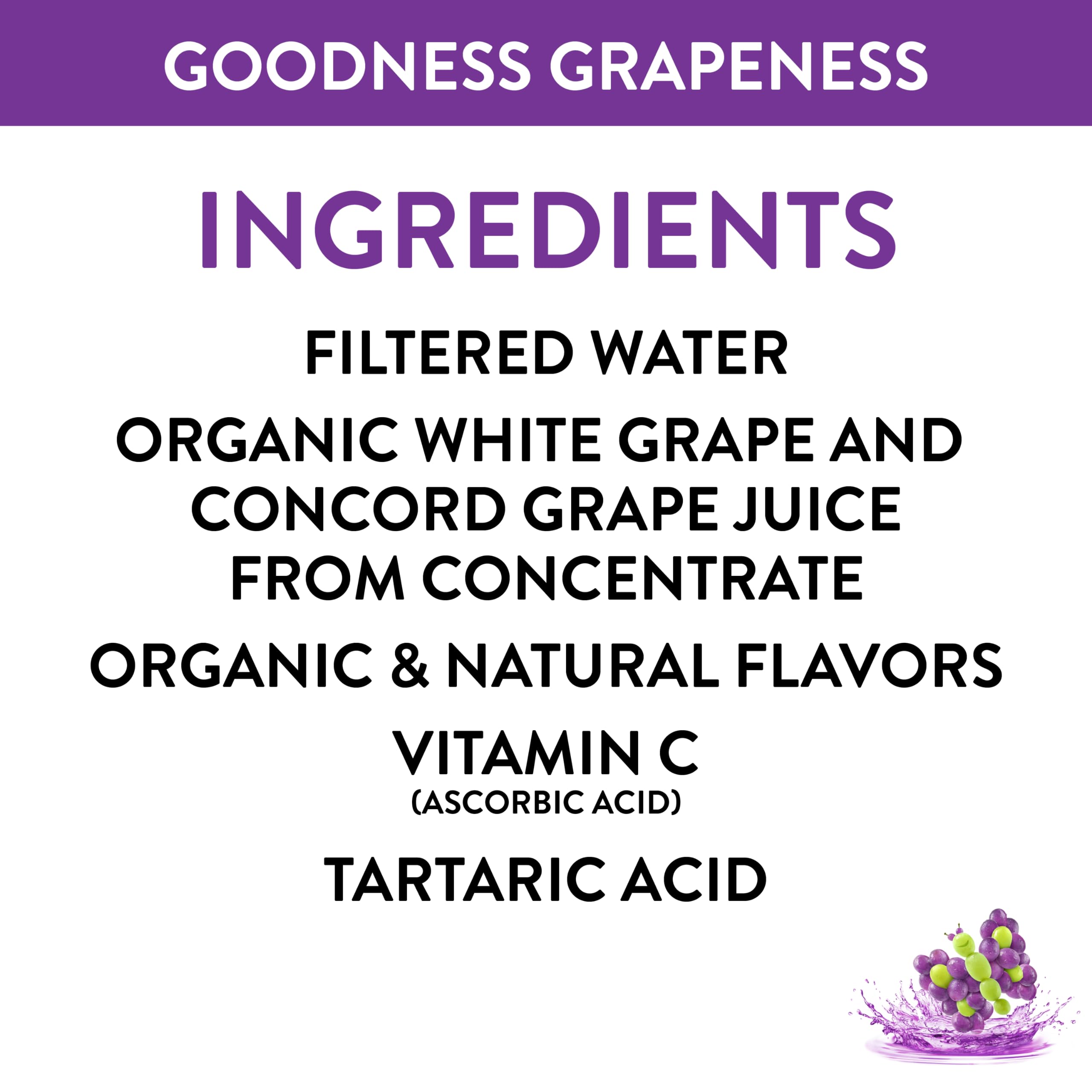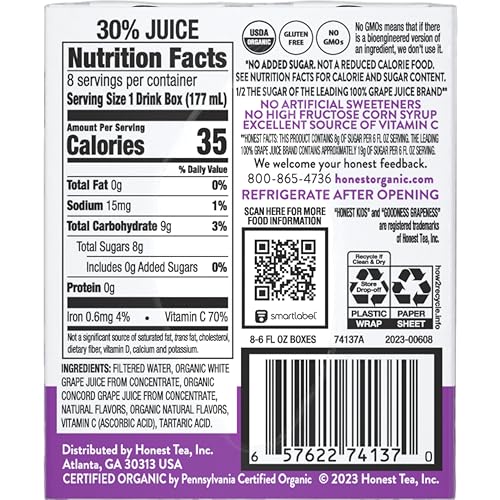 Goodness Grapeness this drink tastes good! Just one sip and you'll be hooked. Phew - in that case, thank goodness it's made with organic, good-tasting grape juice. It's good, it's grape. It's Goodness Grape! This refreshing beverage will leave your kids happy and satisfied, just like a classic storybook ending. Plus, it’s an excellent source of Vitamin C and it has no added sugar. Honest seeks to create and promote sustainable, great-tasting beverages with honesty and integrity, which means telling you exactly what’s in every beverage from the get-go. Choose Honest, and you choose a brand that promotes wellness and a commitment to making sure better options are in your hands. Honest® strives to deliver on this mission, just like it delivers on its high-quality lemonades, teas and juices. Refreshingly yours, The Honest Tea-m