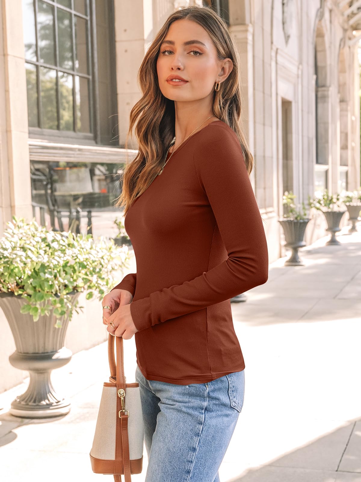 CHIC DESIGN: Basic tops for woman designed with long sleeves, fleece lined, solid color, crewneck, ribbed knit, cozy, stretch fitted, our casual tees will be your faves season after season