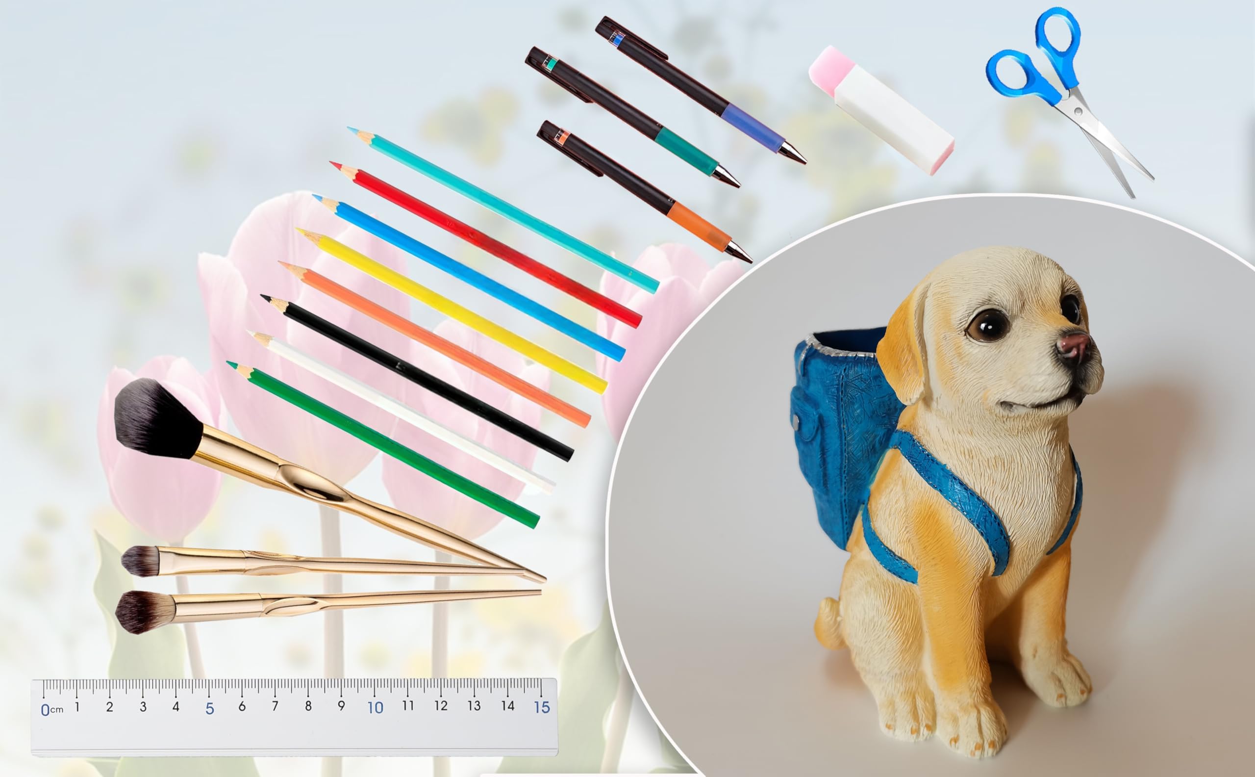 Safety Materials:This cute dog pen holder is made of high quality resin, hand painted and coloured with clear texture carving, realistic demeanour, beautiful and practical