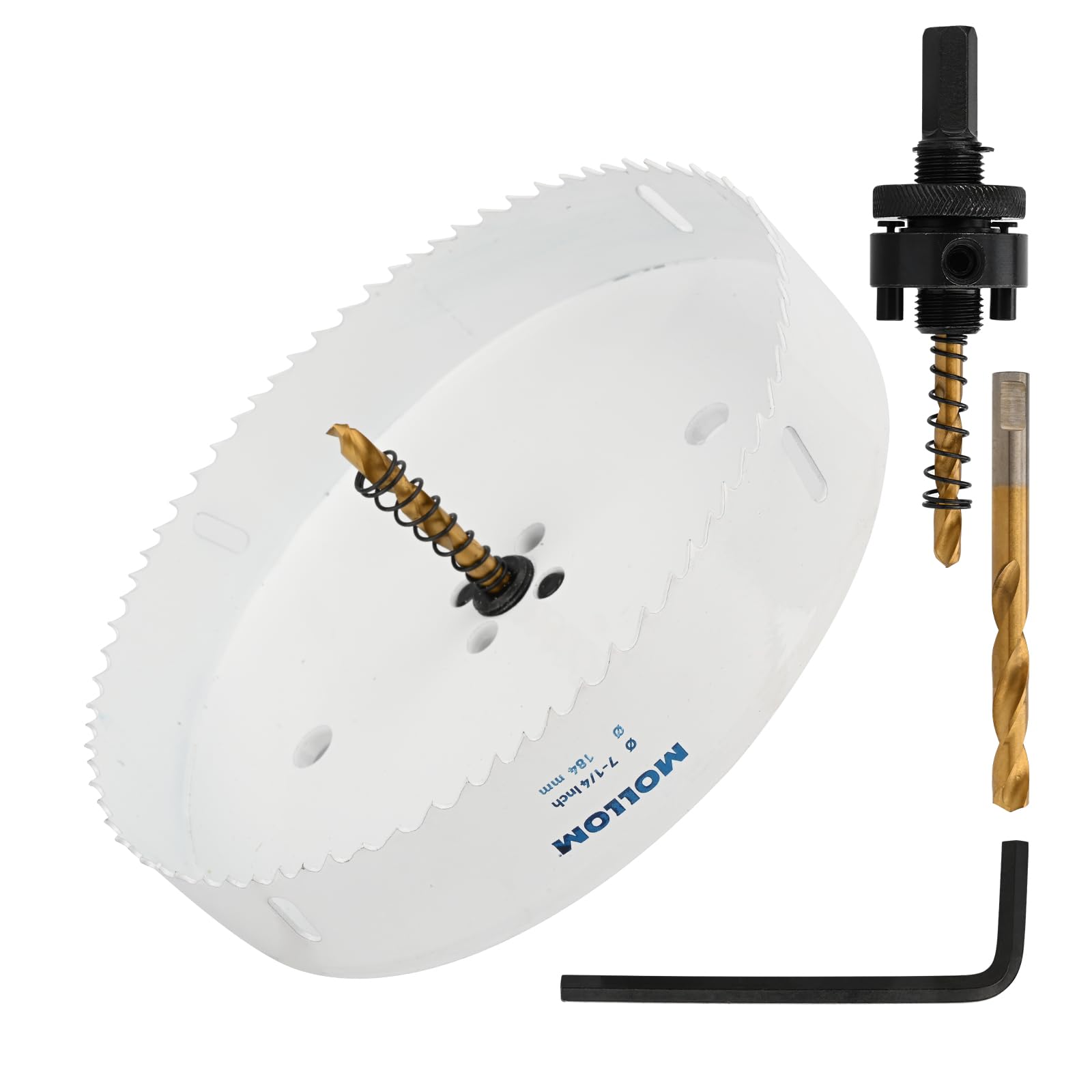 【Dimension】Cutting Dia: 184mm | 7-1/4";Shank Dia: 11mm | 7/16",BI hole saw over 51mm require stronger shank to ensure more security;Hole Saw Depth : 38mm | 1-1/2".Adopting raw materials of Japanese brand sawbands