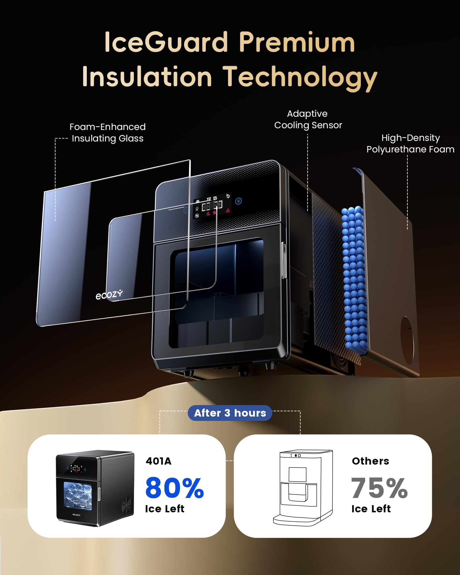 Tech-Driven Insulation Technology:GlacioLock technology, activated only when the ice basket is full, works with double-layer insulation to reduce melt by 10%βkeeping your whisky perfectly chilled and undiluted for a smoother, more flavorful experience