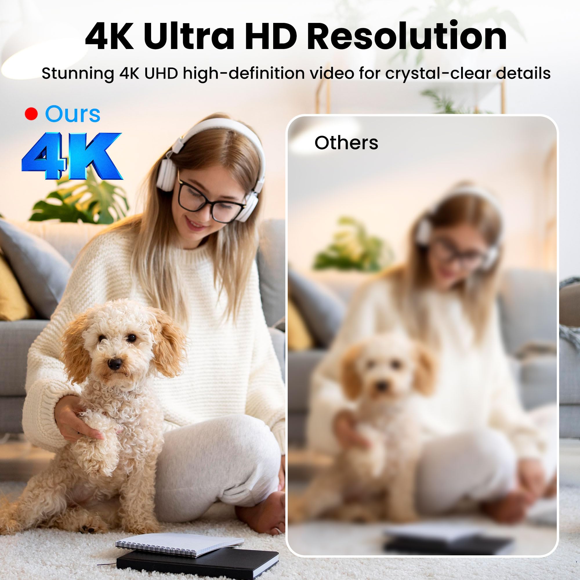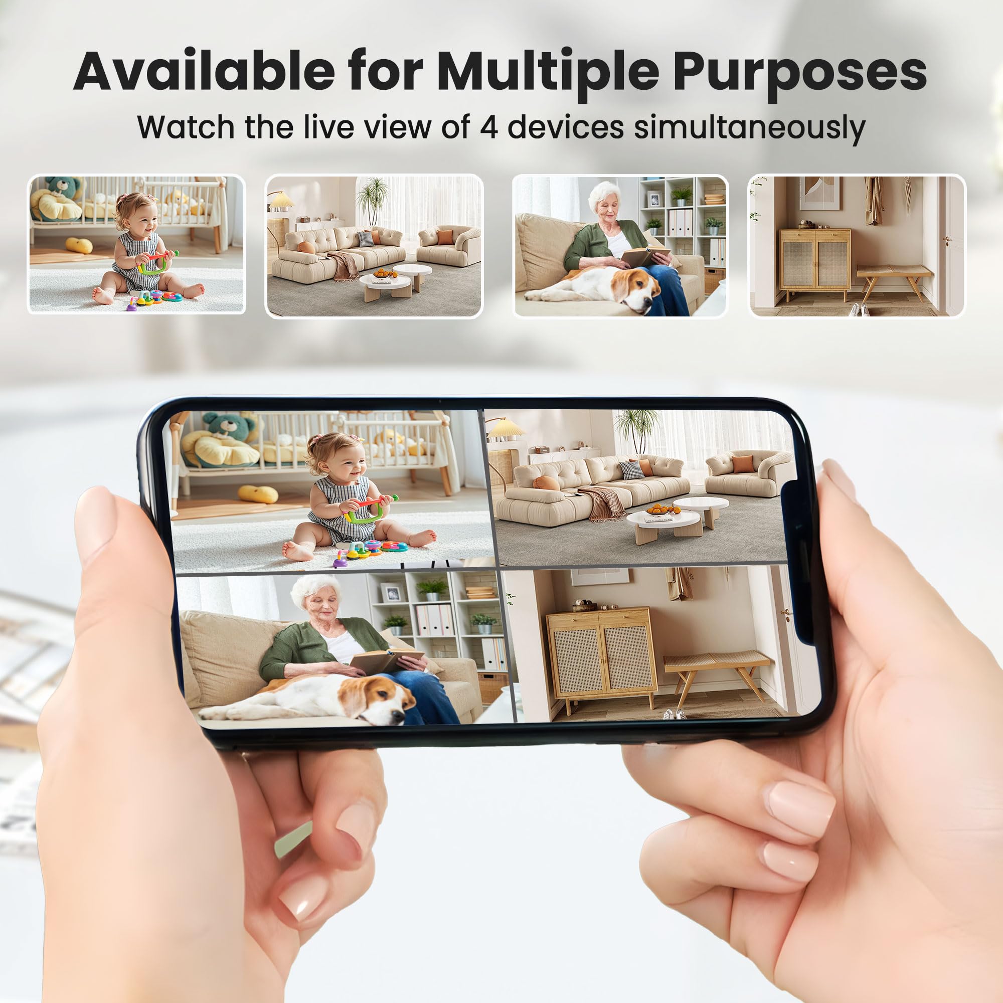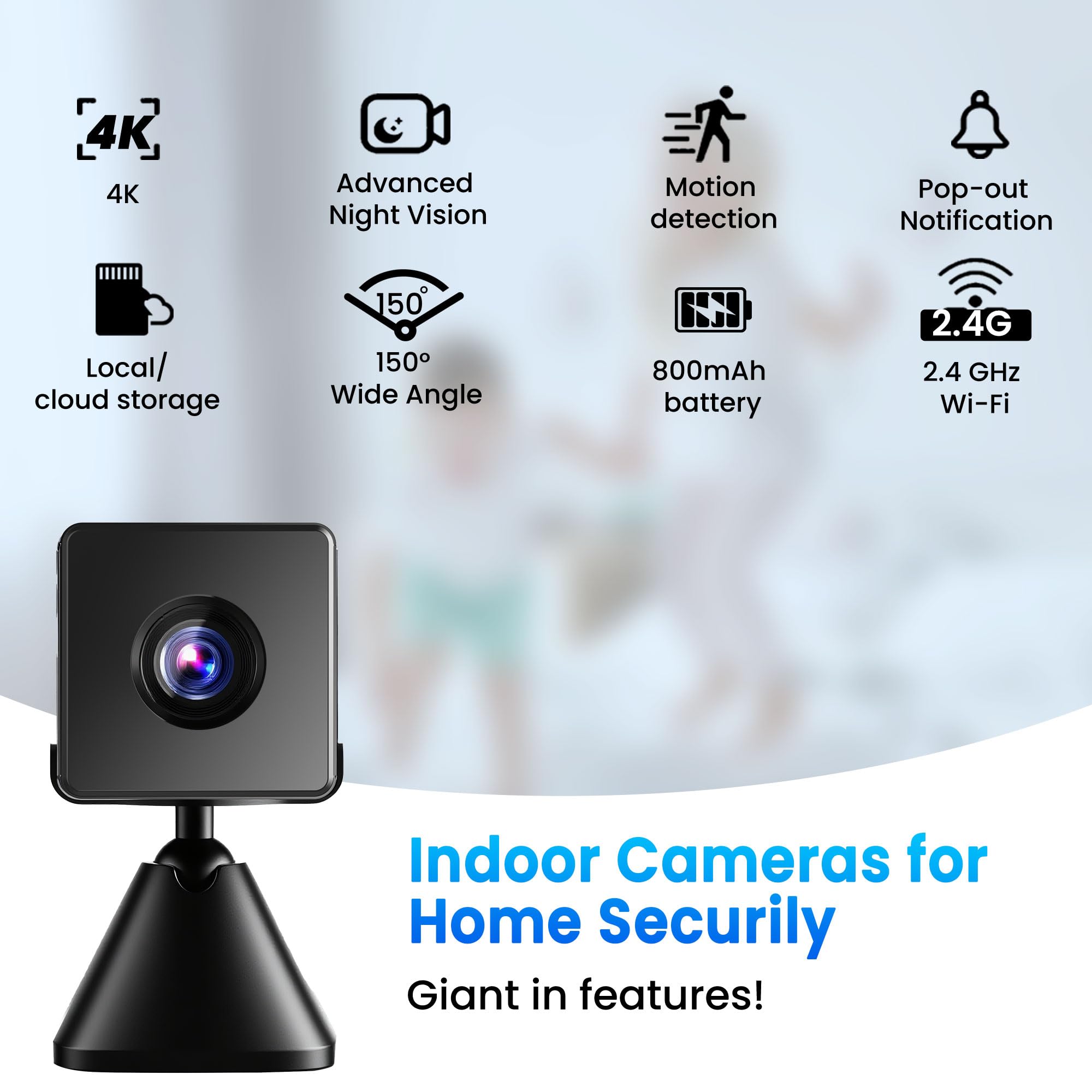 đ˛ă4K Ultra HD Video + Enhanced Night VisionăSay goodbye to grainy footage! Our nanny cam with advanced lens captures crisp 4K video with rich details in both day and night. Infrared night vision delivers clear images up to 16ft, ensuring dependable monitoring around the clock.