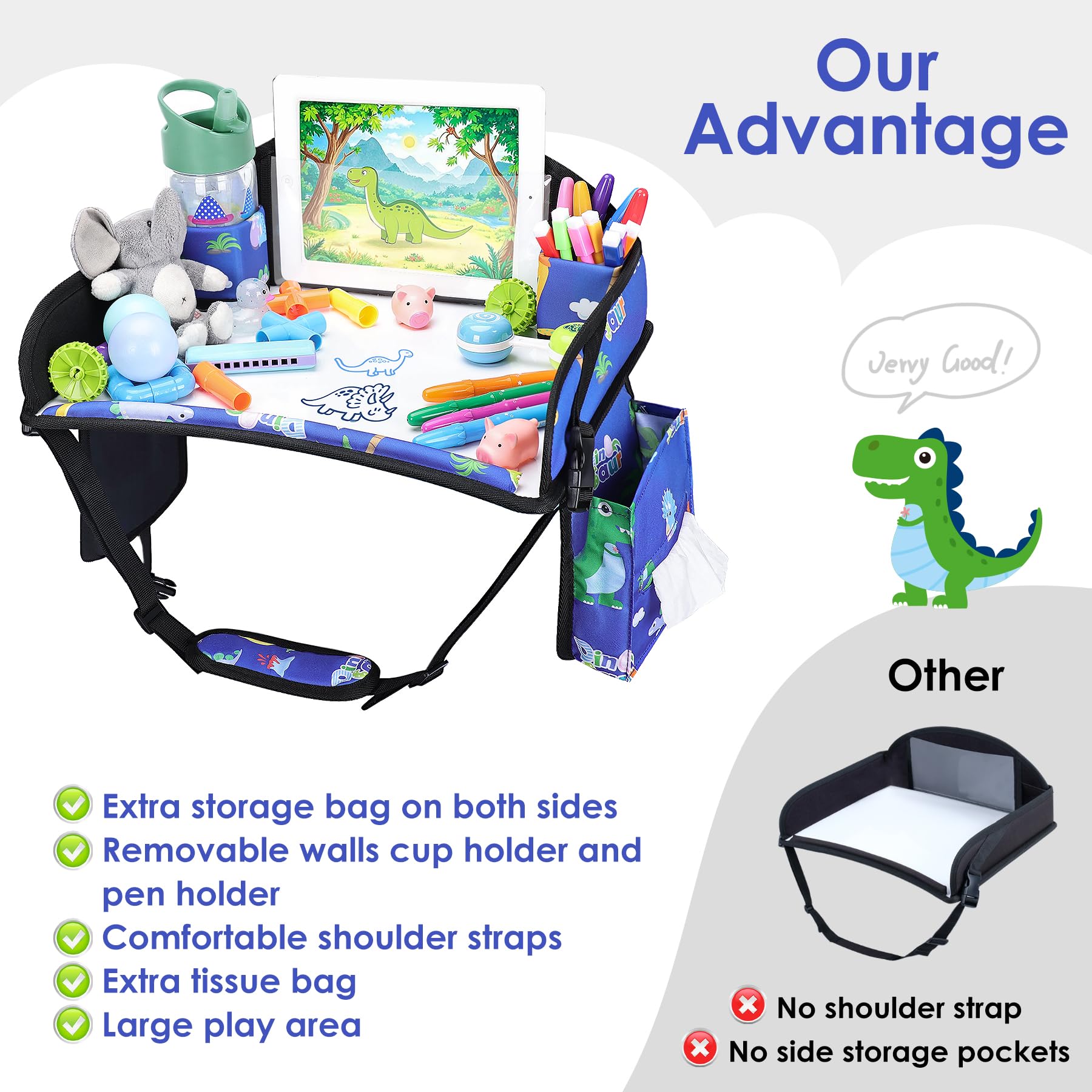 Ideal For Road Trips: Whether in the car, in the stroller or on the plane, wherever and whenever your child's creativity needs you, you can take the car travel tray with you! Carseat table trays can exercise your child's imagination and stimulate their hidden potential through play, and children's attention and independence are significantly improved in this case