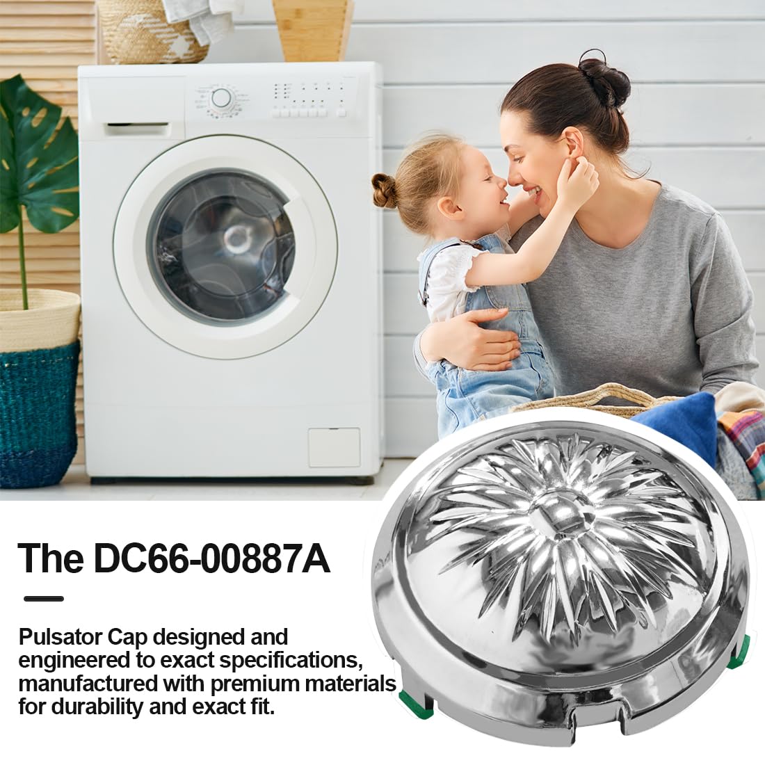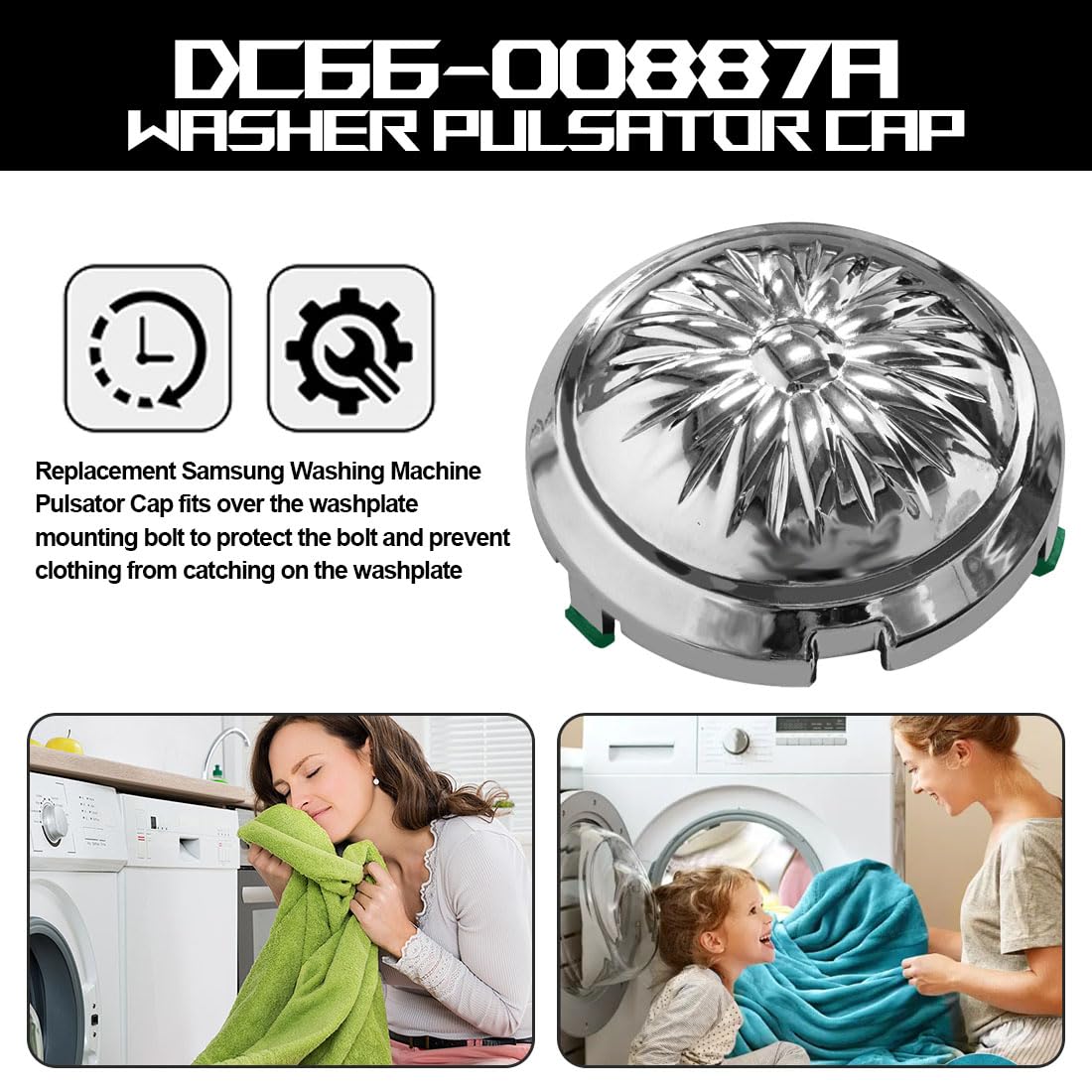 ▶DC66-00887A Chrome Washing Machine Washplate Pulsator Cap, it compatible for Samsung Washing Machine. And replaces the following part numbers: AP6027557, PS11762121, EAP11762121