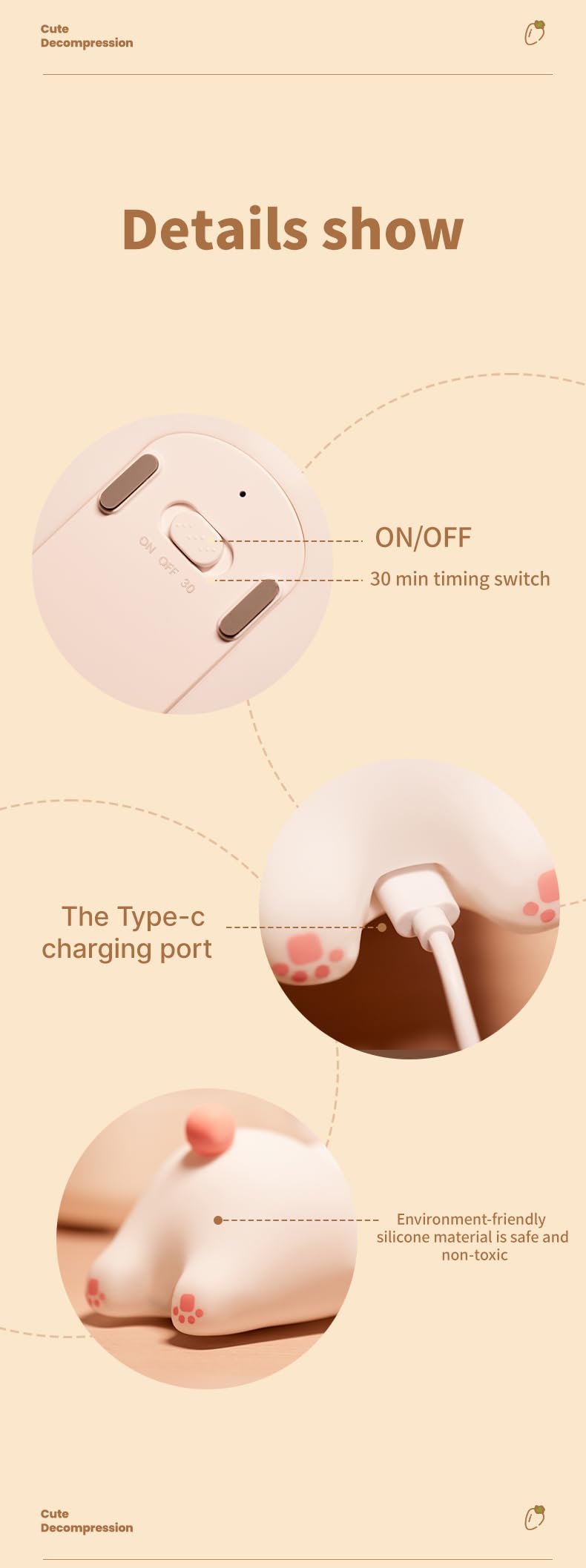 [🐇Portable Lamp] As a click-controlled light, once the bottom is powered on, you can turn the cute light on/off by touching/clicking/kneading the top. In addition, the toddler night light uses a Type-C USB cable to charge, and the built-in 1200mAh battery can support portable use for up to 7 hours after being fully charged.