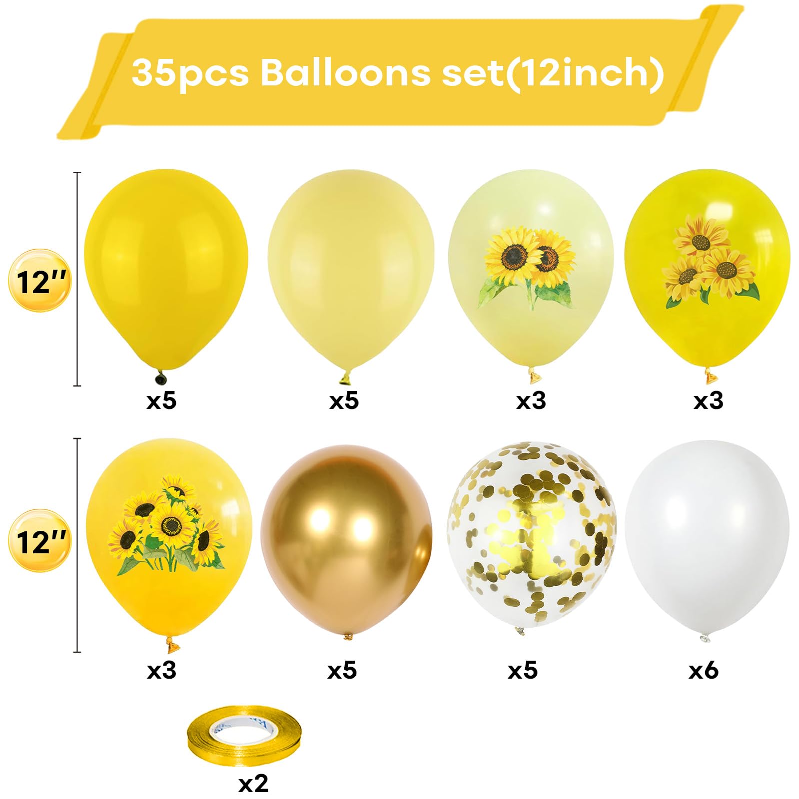 Yellow Sunflower Balloons: 35 packs balloons and 2 packs ribbons. All our party balloons are shipped in vacuum packaging to prevent them from being oxidized during transportation.