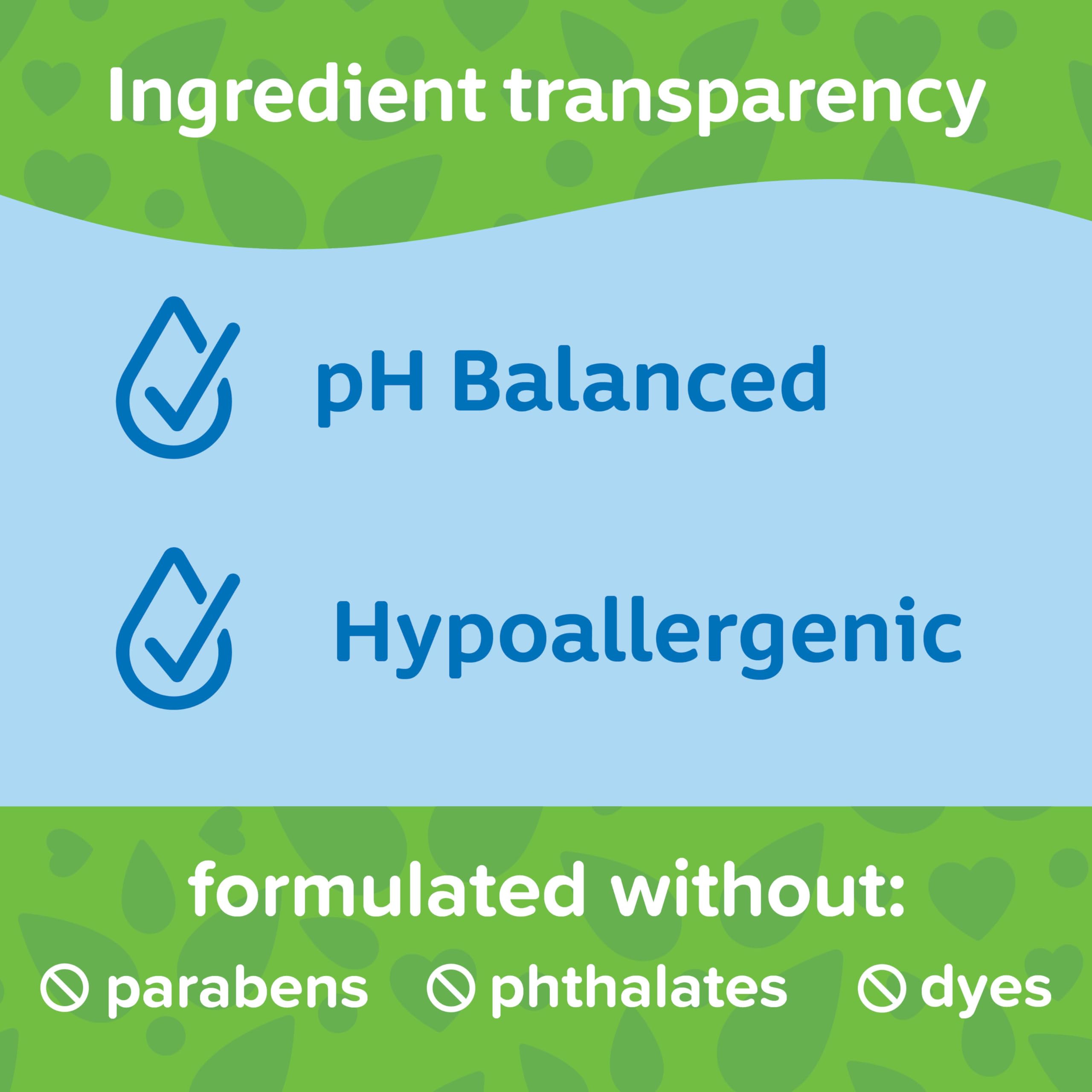 The hypoallergenic body wash with a No More Tears formula & high-purity glycerin is formulated free of parabens & dyes. The bath wash is gentle enough for baby's sensitive skin & hair & good for the whole family