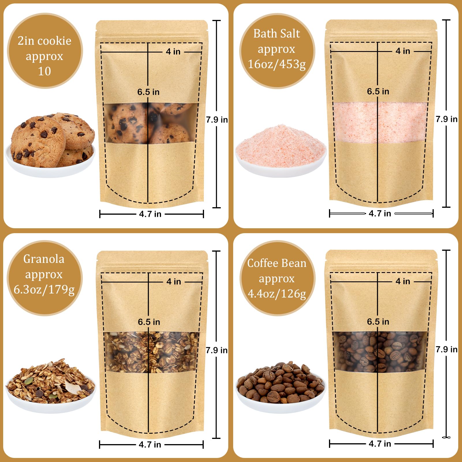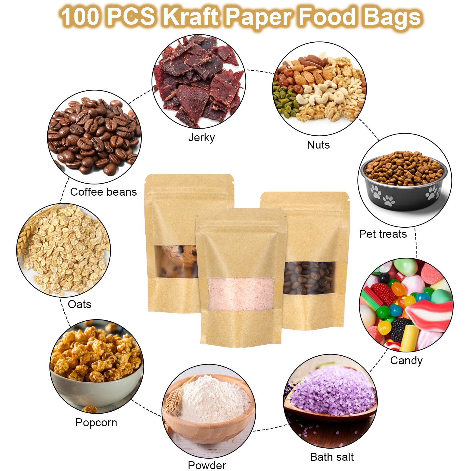 Reliable Kraft Paper Bags: Blisstime kraft paper bags are made from food grade kraft paper and PE, which is odorless, reusable and moisture proof, keeps your products freshness. Please purchase according to the usable sizes identified in the picture.