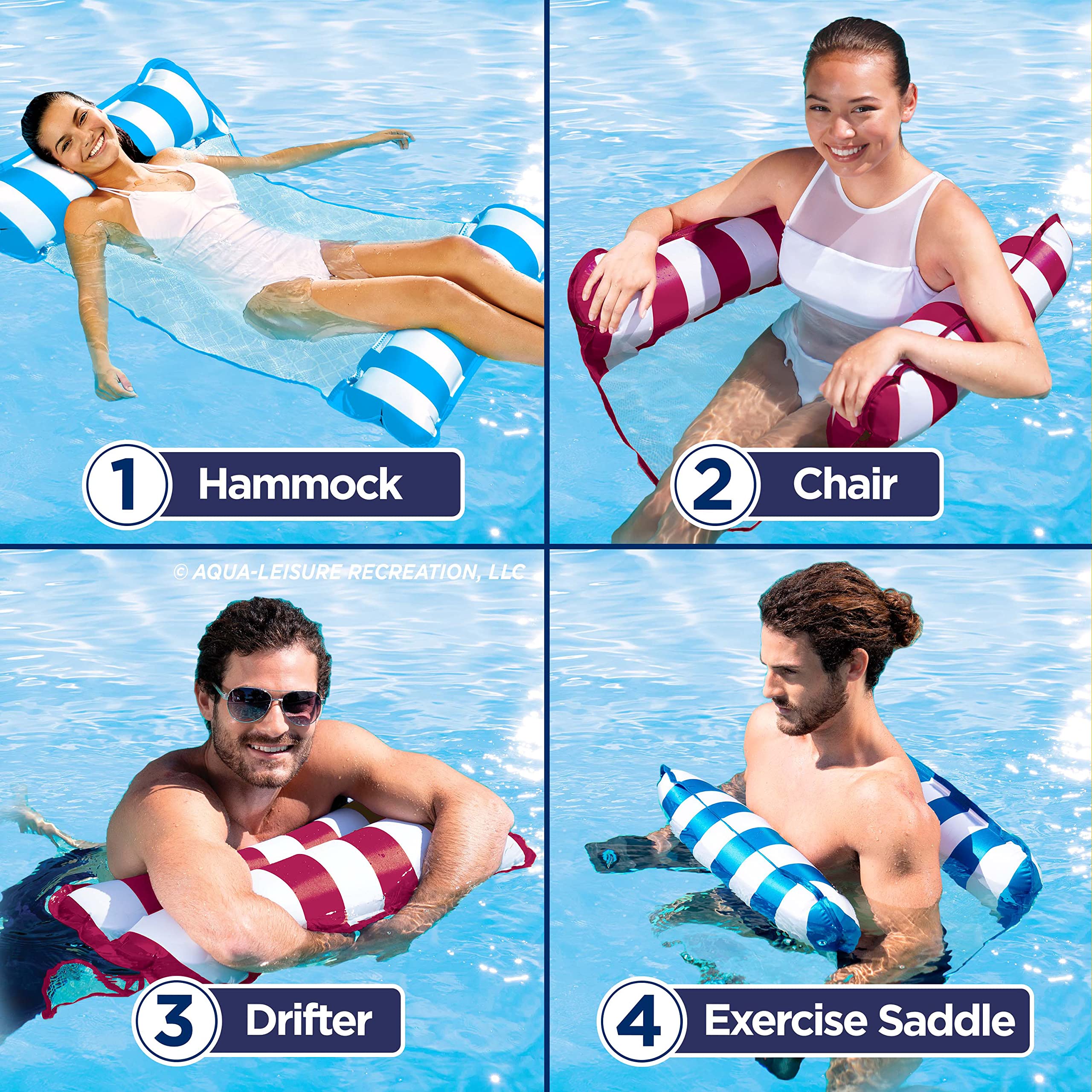 Multi-purpose pool float: Float in lakes, oceans and swimming pools; good for use as an exercise saddle, chair, hammock, or drifter