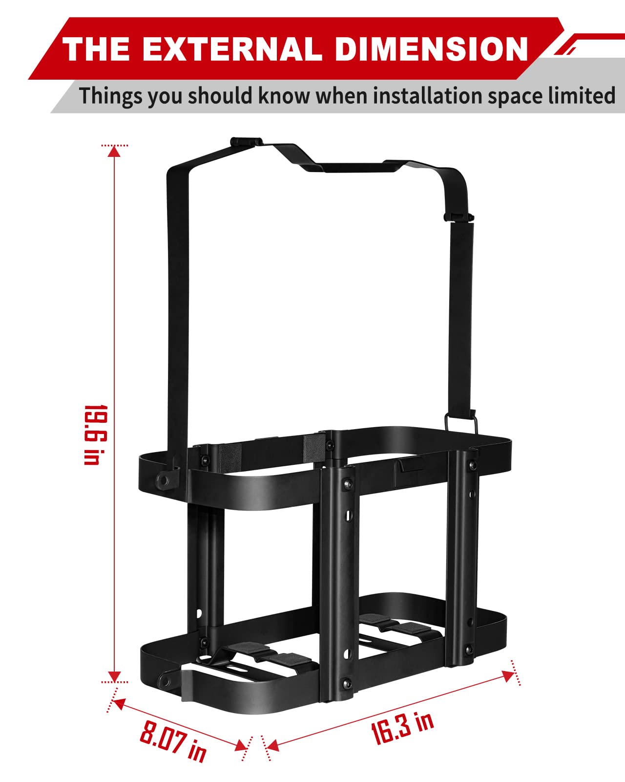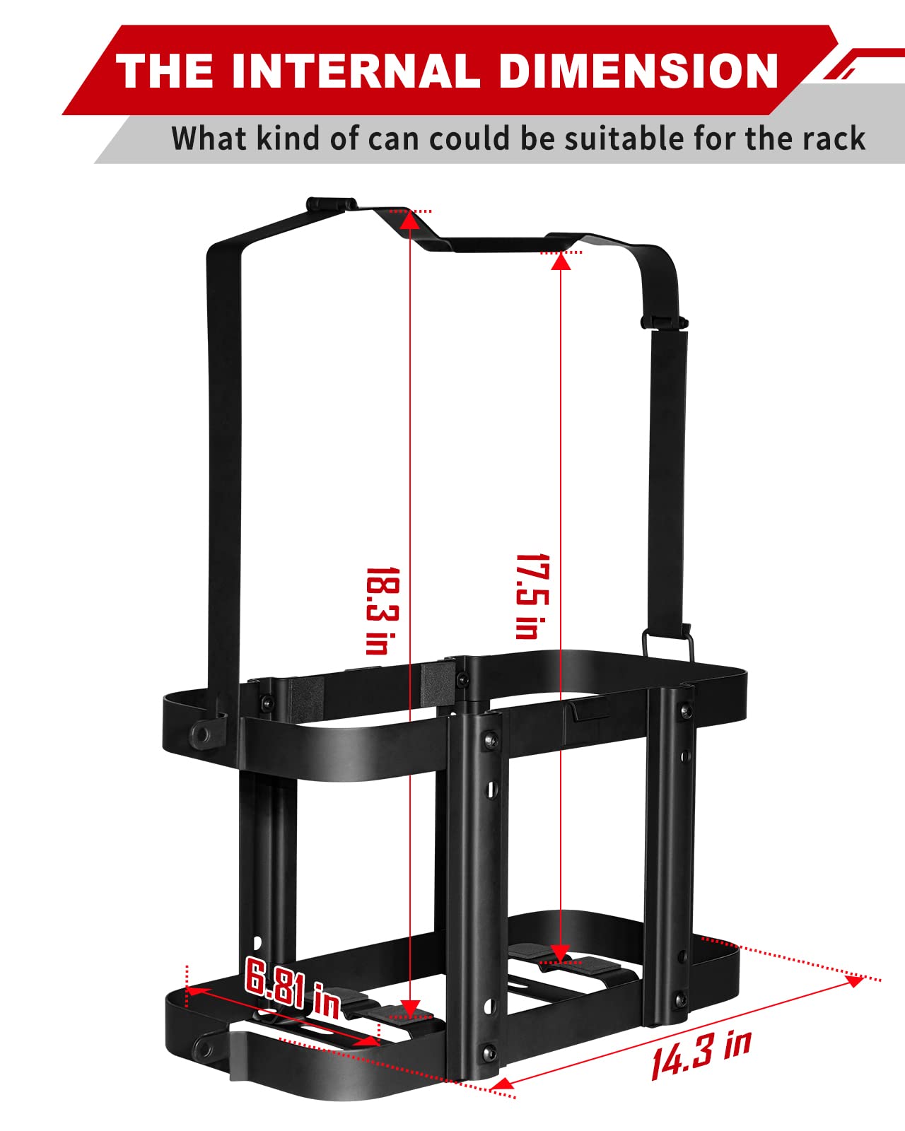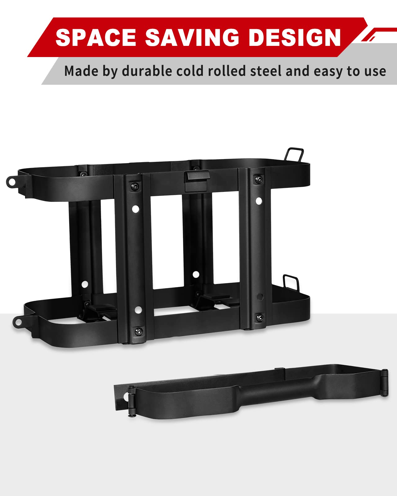 【 Material 】Our jerry can mounts are made of full cold rolled steel, which has good hardness. Black powder coating can prevent corrosion and rust.