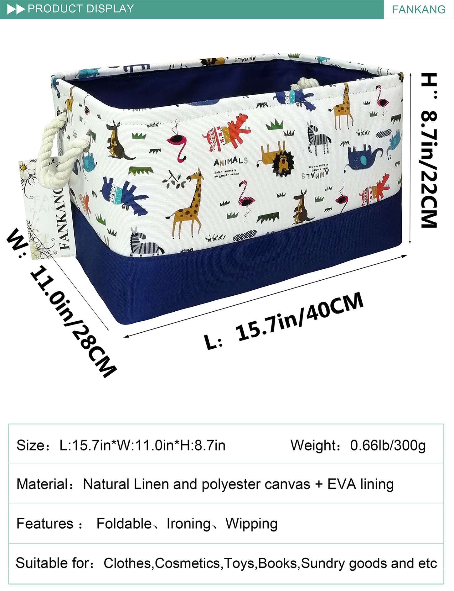 Easy to carry: The lightweight canvas storage bins with handles allow you to carry your load easier. Wire-rimmed edges add form and stability. Help your kids clean up their act with our cute storage bins.