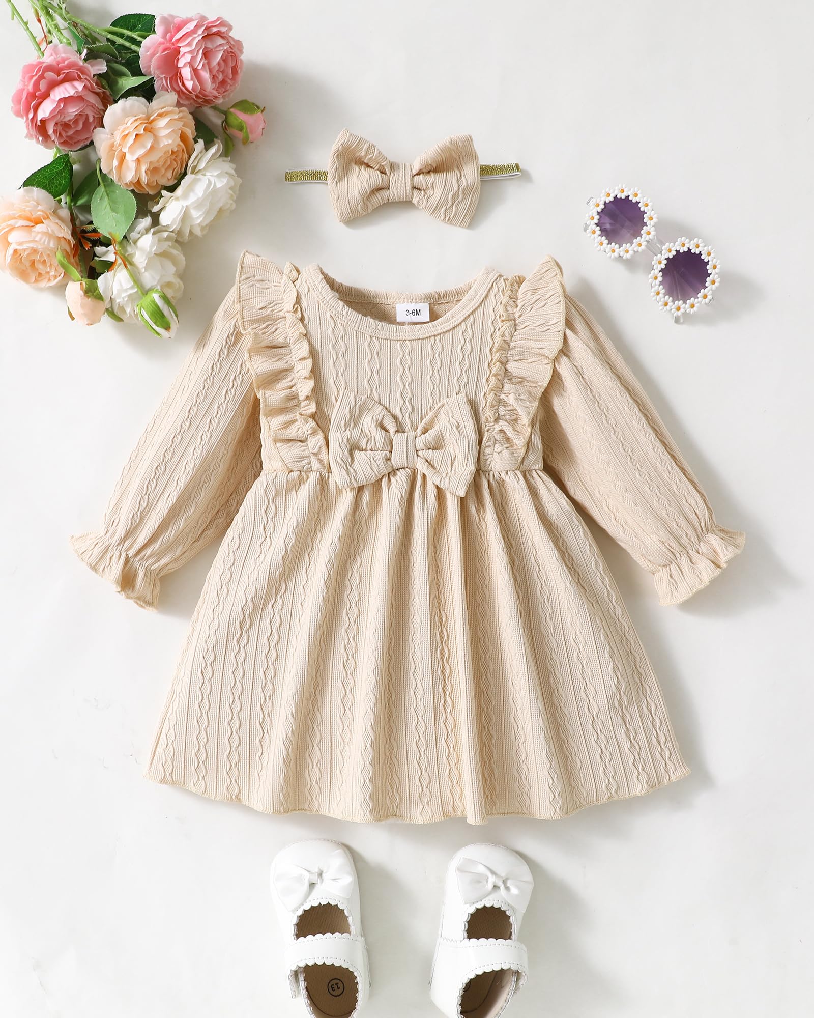 Design: Baby girl dresses design with cute lantern puff sleeve and delicate bowknot decoration and cute heandband,which will make your baby girl more lovely and fashionable