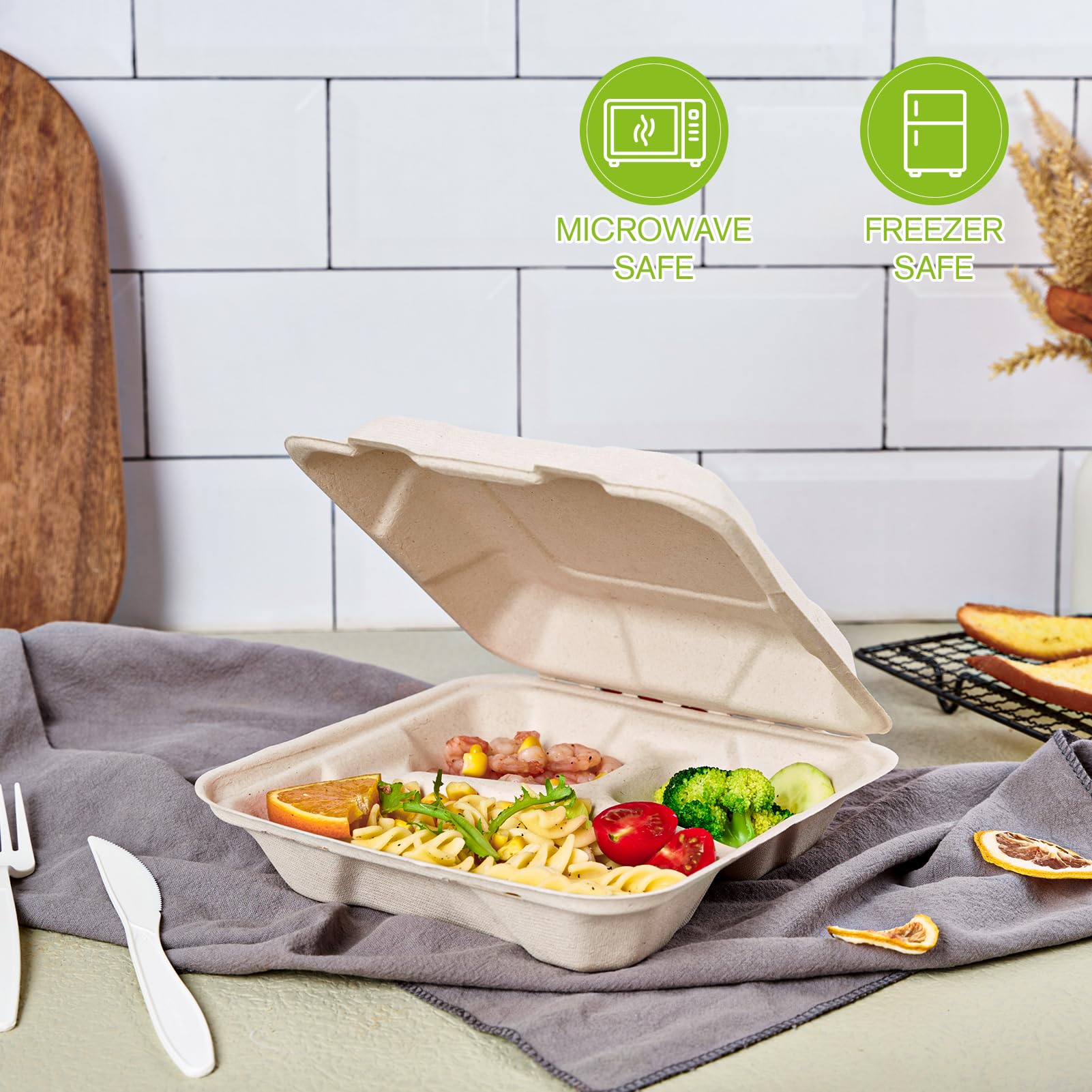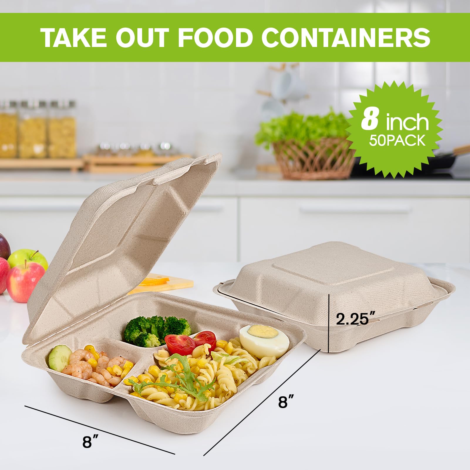 Package Contents: You will receive 50 packs of 8 inch 3 compartment disposable take out containers; Great for your daily meal or picnic, party, to-go order, and other types of food service
