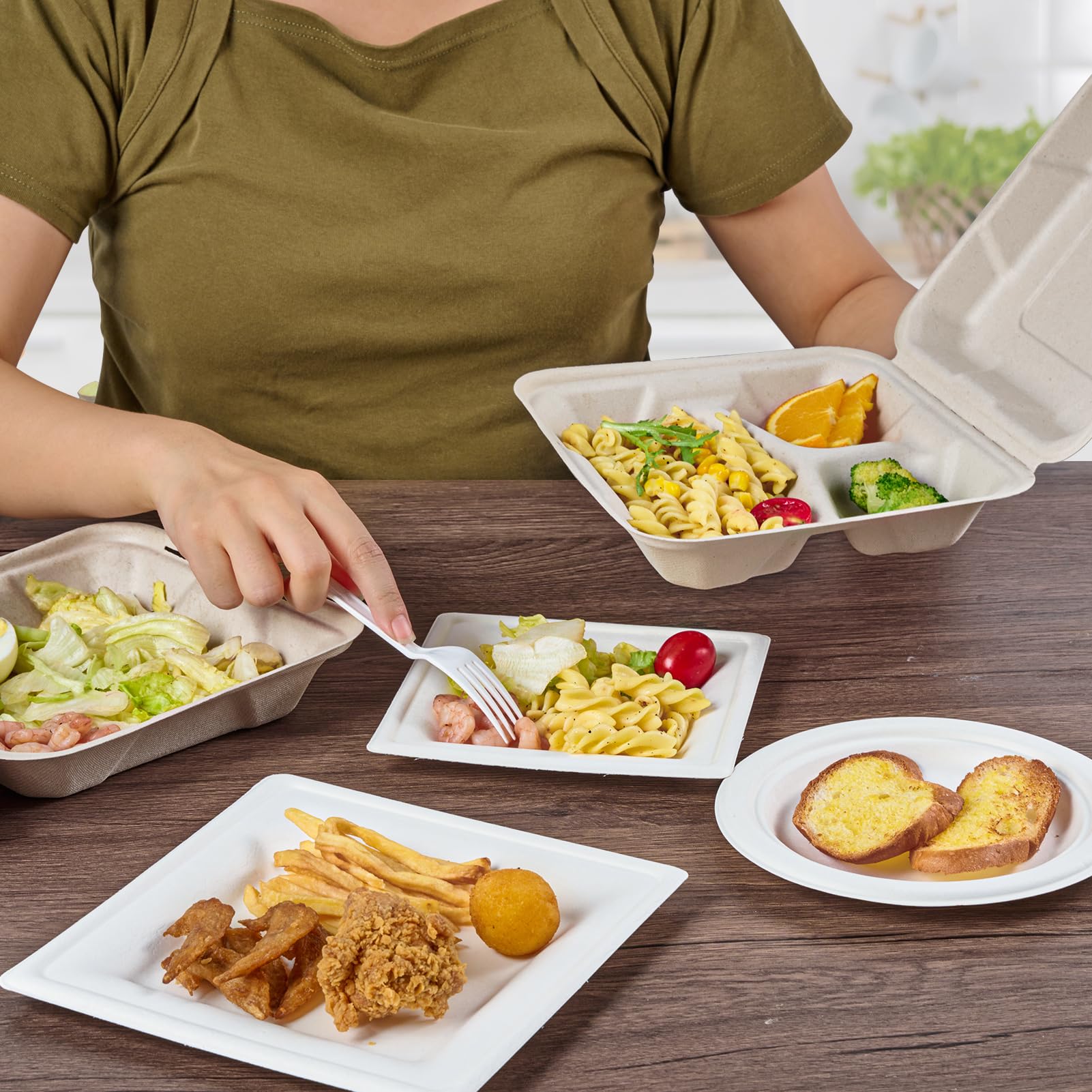 Heavy Duty And Double Locking: Compostable to go food containers offer sturdy function and easy cleanup, that can effectively prevent leakage. You can use them for any hot and cold Food, They're also microwave and freezer-safe, oil and cut-resistant