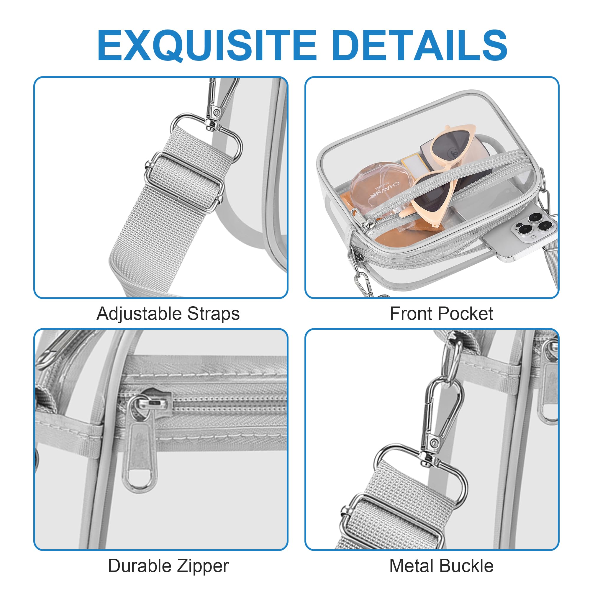 [Water-Resistant PVC Material] Made of durable 0.4mm thick PVC, this small mini clear bag is resistant to deformation and cracking. Its excellent water-resistant properties keep your belongings dry. Note: Avoid exposure to large amounts of water or heavy rain