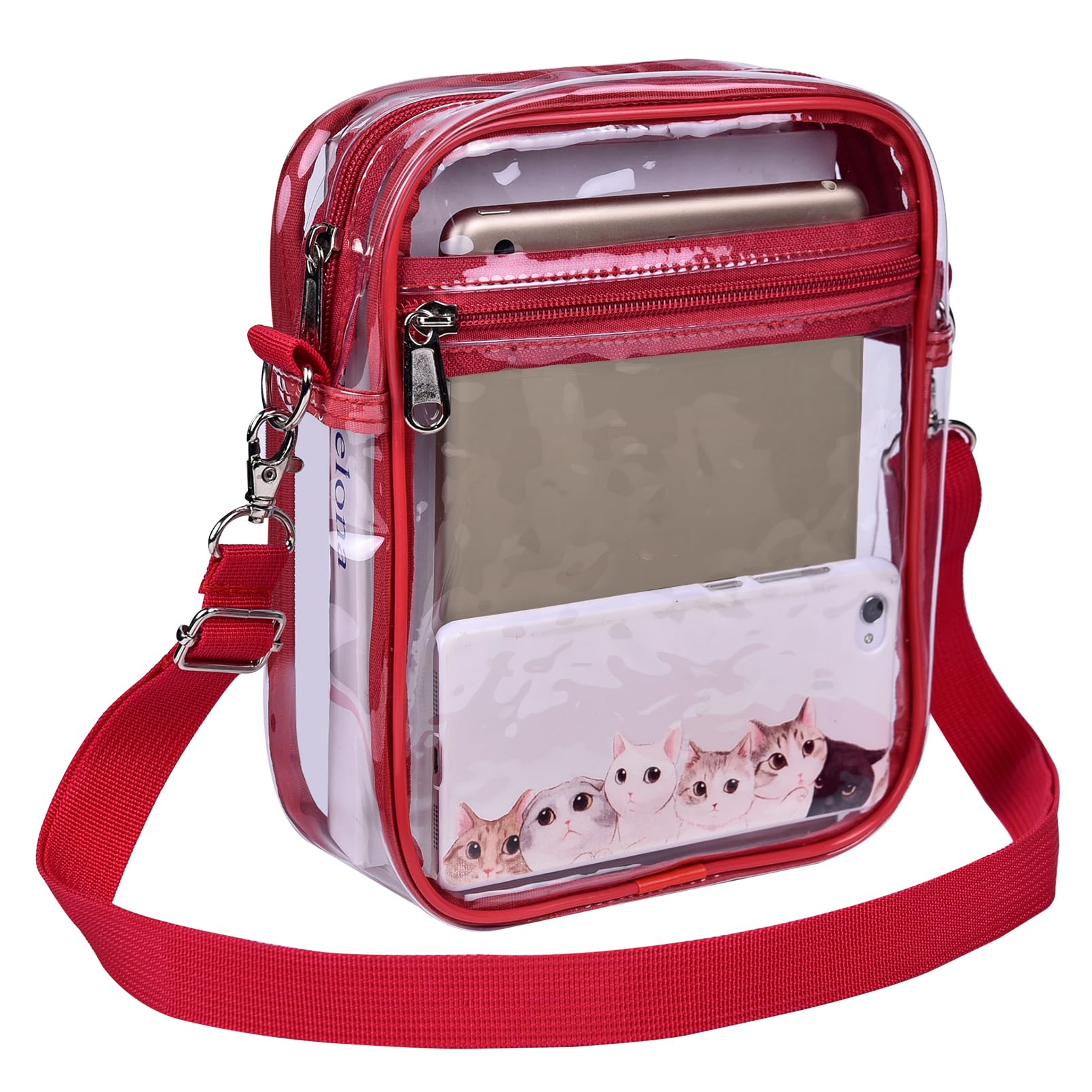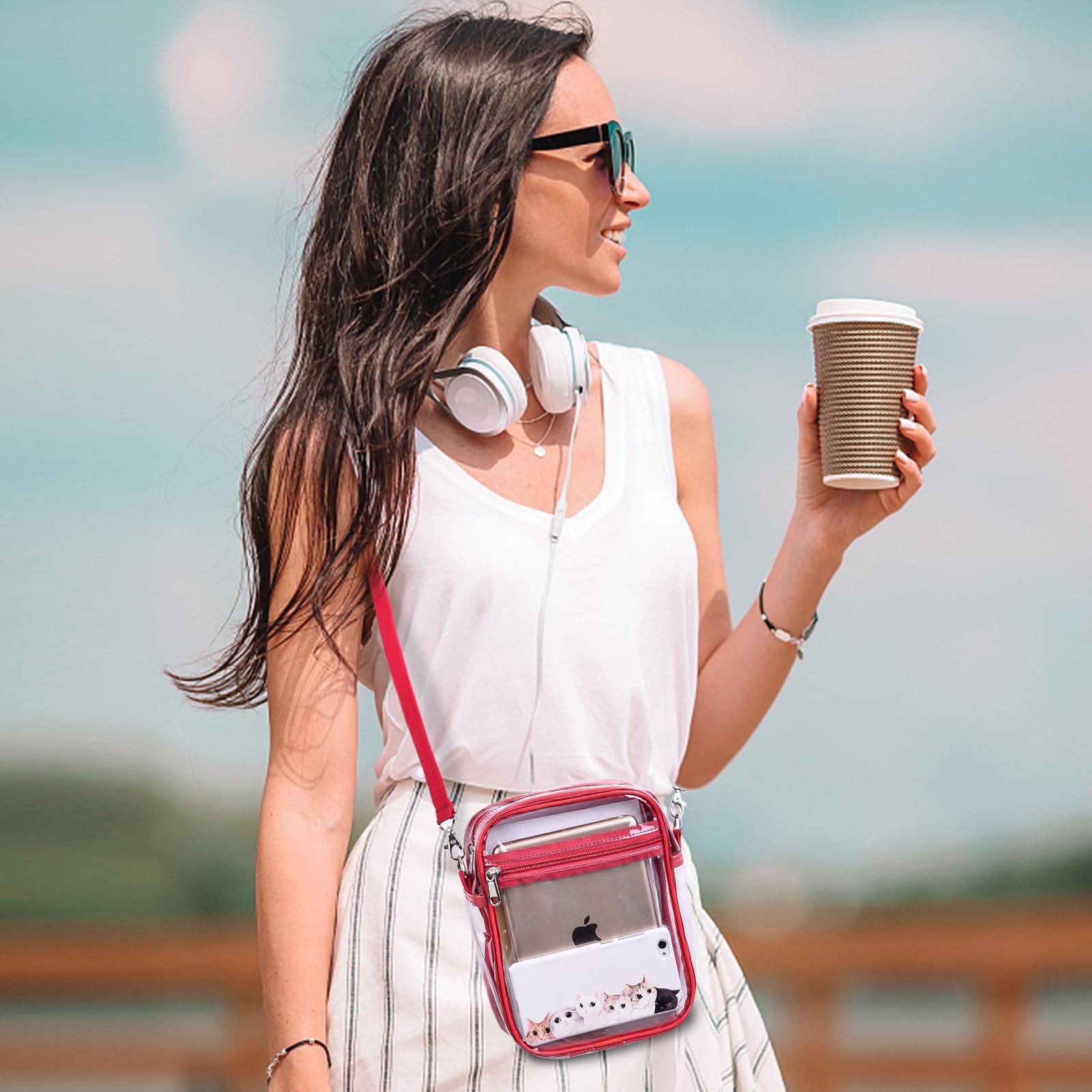 【Suitable Capacity】One main compartment can hold a small wallet, phone, lipstick, pen, tissues, and sunglasses, while the front pocket can hold keys, cash, cards, and tickets, making our clear bag an essential for your concert outfit.