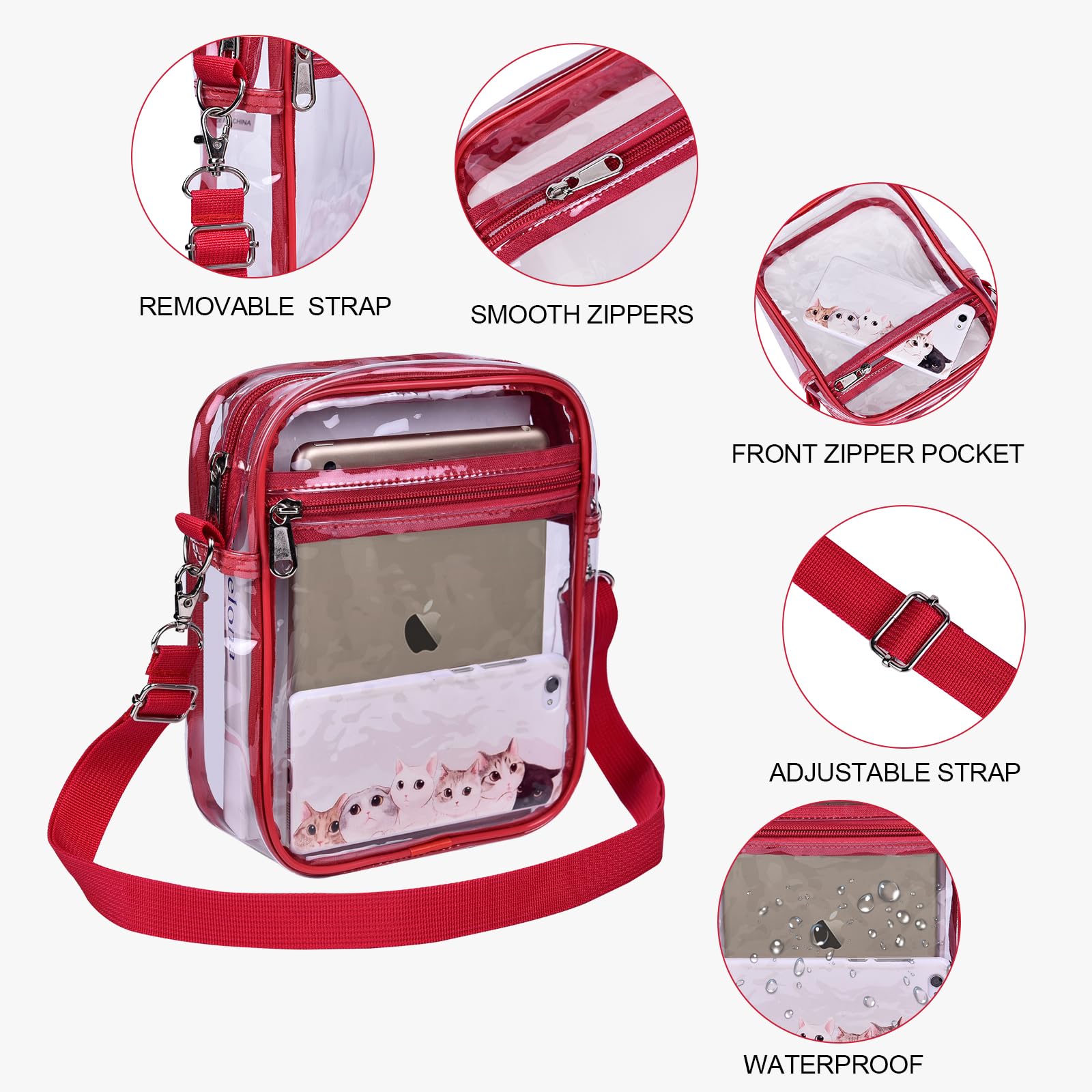 【Durable Material】Made of heavy duty PVC material which is thick, waterproof, sturdy, and well-made, Our clear purse can ensure long-lasting durability. NOTE: Do not immerse it in water or expose it to heavy rain to avoid water getting through the zipper.The clear bag is only for people over 4 years old.
