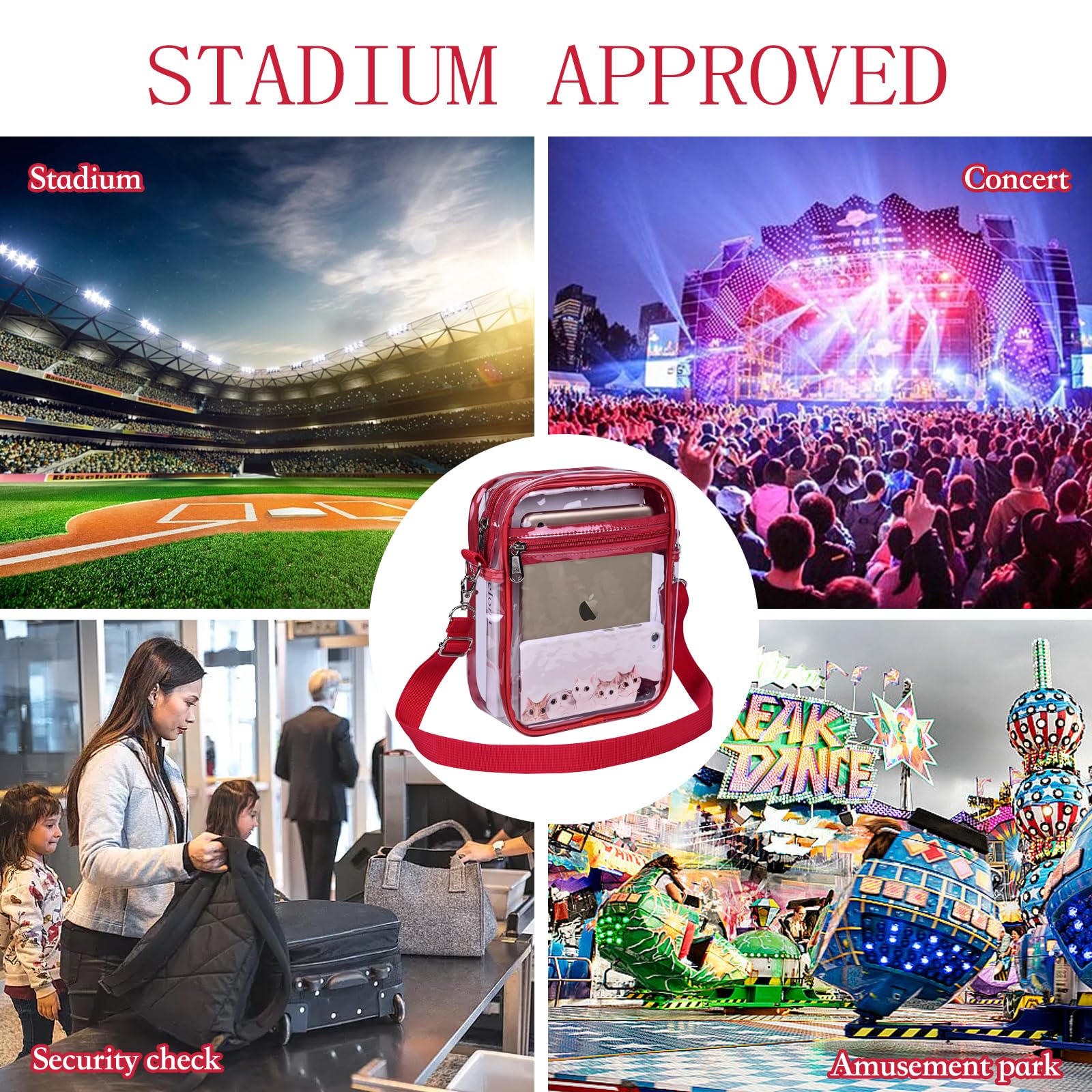 【Stadium Approved Size】The size for stadium events - 8.3" H x 6.7" L x 2.8" W, meets the clear bag policy of no larger than 12*12*6 inches, making it suitable for stadiums, concerts, and sports events.
